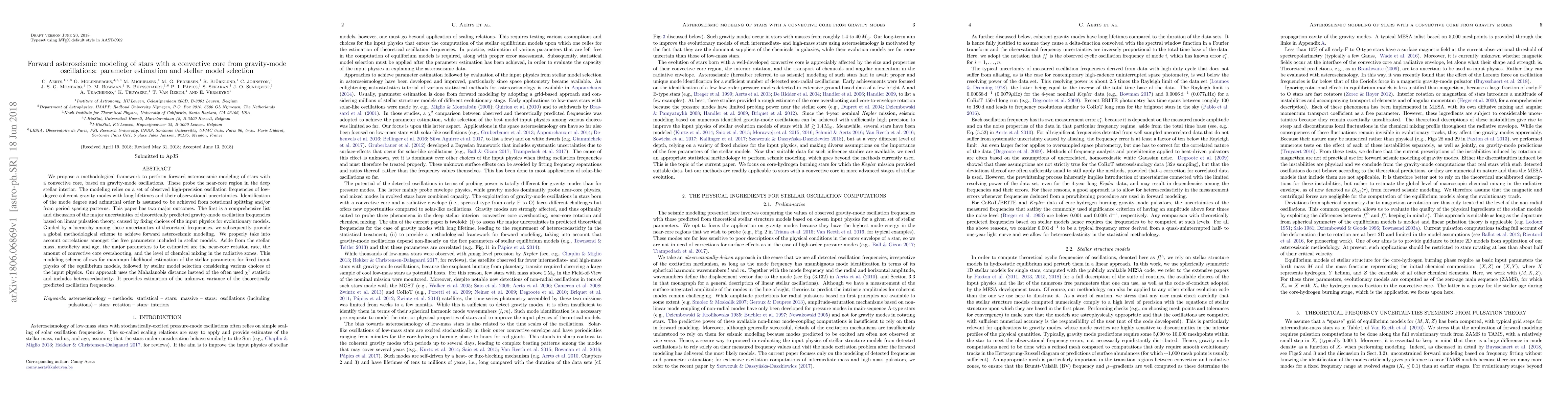 This paper introduces a method for forward asteroseismic modeling of stars with convective cores using gravity-mode oscillations, focusing on the estimation of stellar parameters like rotation rate and convective core overshooting. It proposes a global scheme for parameter estimation and model selection, utilizing the Mahalanobis distance to account for uncertainties and correlations in the input physics.