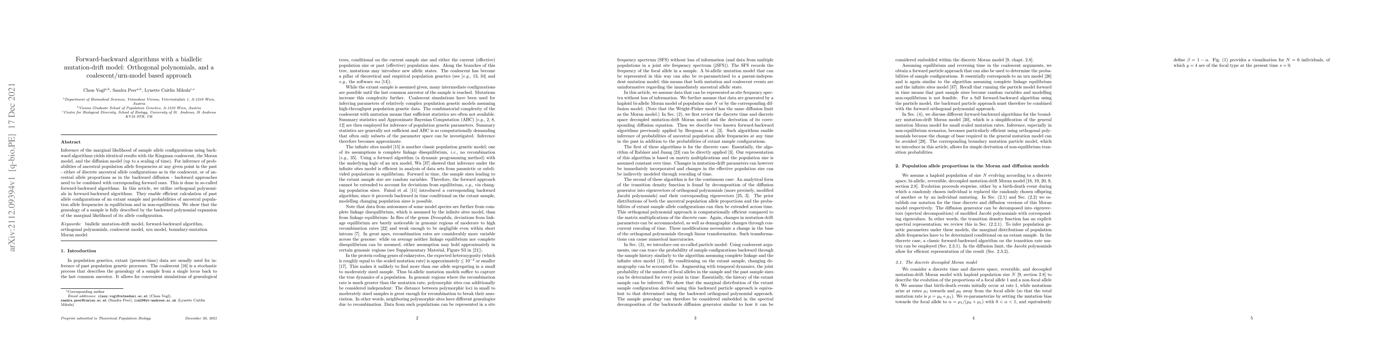 Inference of the marginal likelihood of sample allele configurations using backward algorithms yields identical results with the Kingman coalescent, the Moran model, and the diffusion model (up to a scaling of time). For inference of probabilities of ancestral population allele frequencies at any given point in the past - either of discrete ancestral allele configurations as in the coalescent, or of ancestral allele proportions as in the backward diffusion - backward approaches need to be combined with corresponding forward ones. This is done in so-called forward-backward algorithms. In this article, we utilize orthogonal polynomials in forward-backward algorithms. They enable efficient calculation of past allele configurations of an extant sample and probabilities of ancestral population allele frequencies in equilibrium and in non-equilibrium. We show that the genealogy of a sample is fully described by the backward polynomial expansion of the marginal likelihood of its allele configuration.