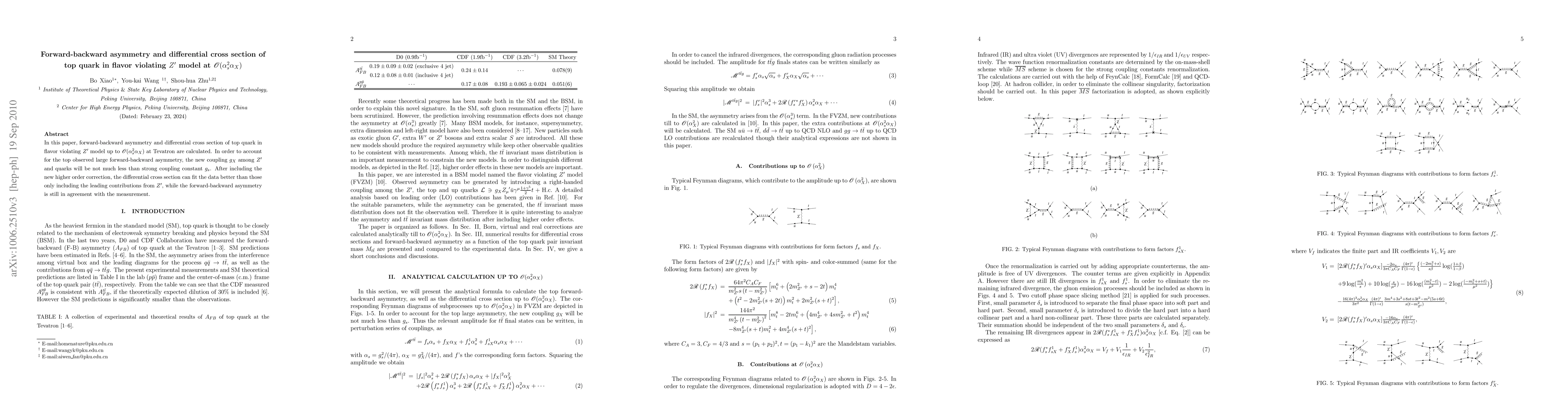 This paper calculates the forward-backward asymmetry and differential cross section of top quarks in a flavor-violating $Z'$ model at higher order corrections. It finds that the new coupling $g_X$ between $Z'$ and quarks must be significant to explain the large observed asymmetry, leading to improved agreement with experimental data.