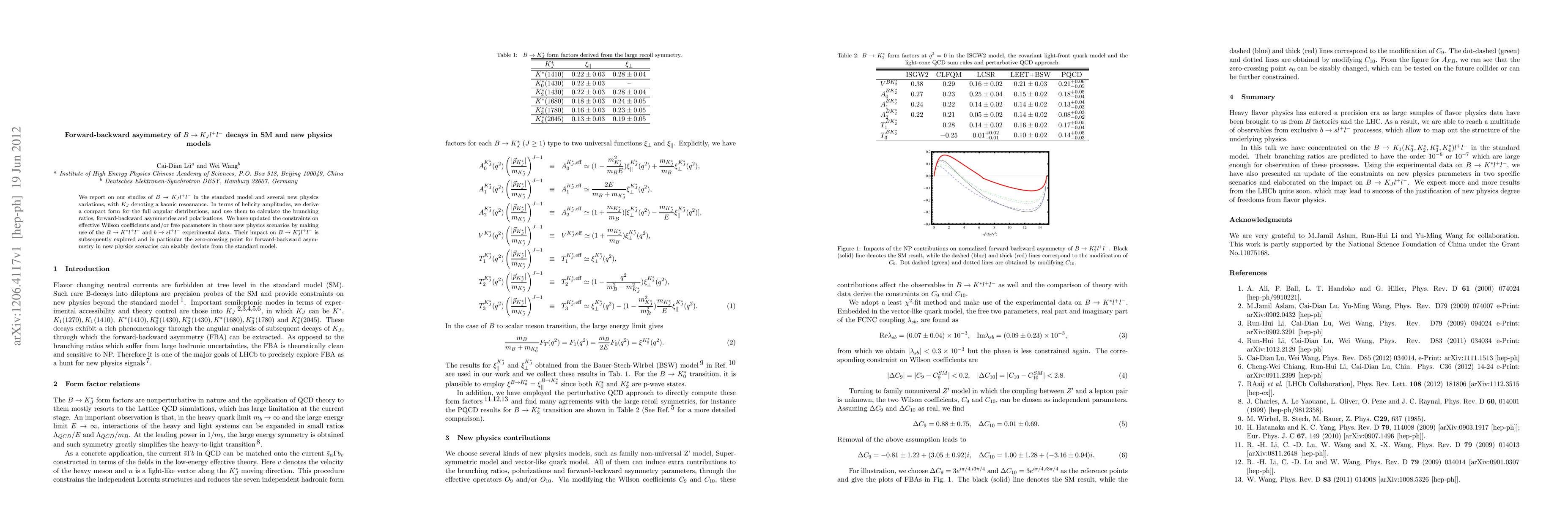 This paper investigates the forward-backward asymmetry in $B\to K_J l^+l^-$ decays within the Standard Model and various new physics models, deriving angular distributions and updating constraints on effective Wilson coefficients. It finds that new physics scenarios can significantly alter the zero-crossing point of the forward-backward asymmetry compared to the Standard Model predictions.