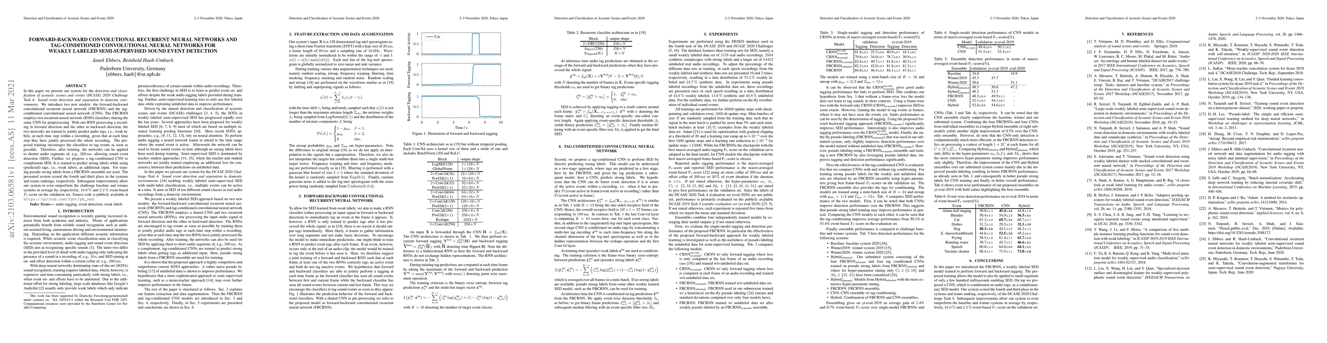 This research introduces two innovative neural network models for weakly labeled semi-supervised sound event detection. The forward-backward convolutional recurrent neural network (FBCRNN) processes audio recordings in both forward and backward directions, enhancing detection efficiency. The tag-conditioned convolutional neural network (CNN) further refines detection by using weak labels as additional input. The system achieved notable rankings in the DCASE 2020 Challenge, demonstrating significant improvements over baseline systems. Source code is available for further exploration.