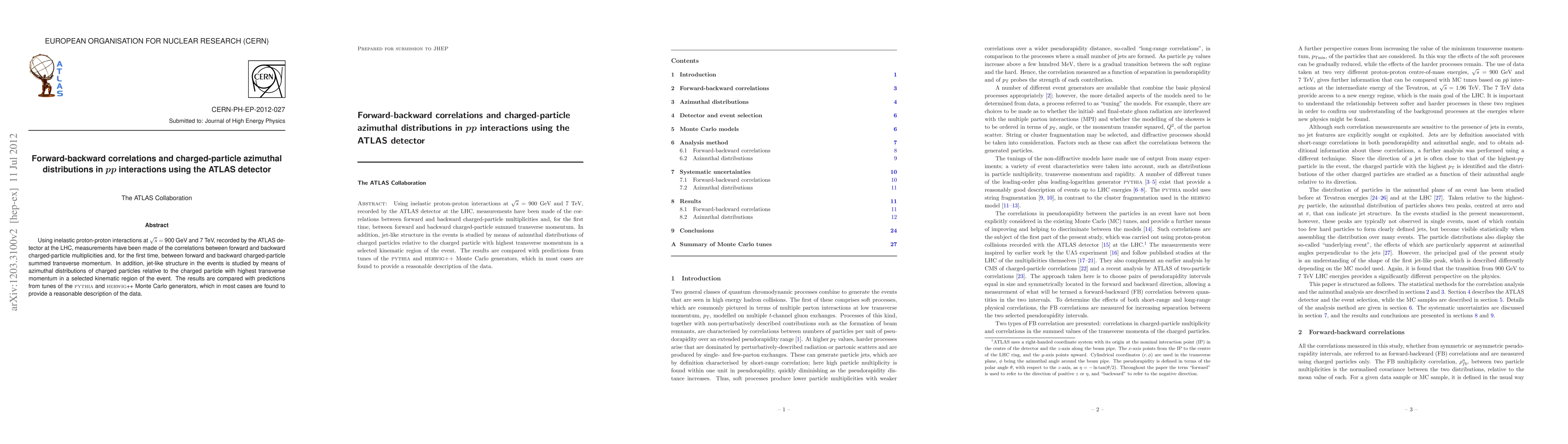 This paper investigates forward-backward correlations and charged-particle azimuthal distributions in proton-proton interactions at 900 GeV and 7 TeV using the ATLAS detector. The study reveals new insights into the correlations between forward and backward charged-particle multiplicities and transverse momentum, and compares these findings with PYTHIA and HERWIG++ Monte Carlo predictions, which generally match the observed data.