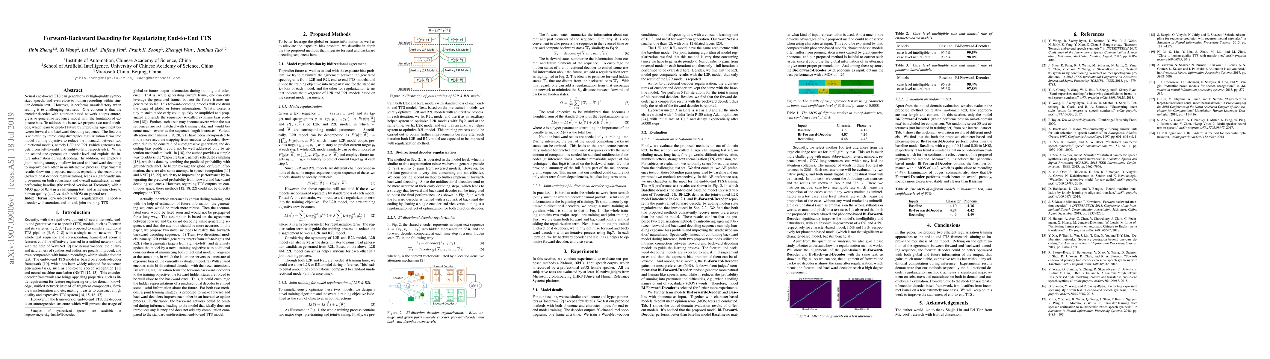 This paper proposes two methods to regularize neural end-to-end TTS models, addressing "exposure bias" through forward-backward decoding. The first method introduces divergence regularization to reduce model mismatch, while the second leverages future information during decoding. Experimental results show significant improvements in robustness and naturalness, outperforming the baseline by a MOS gap of 0.14.