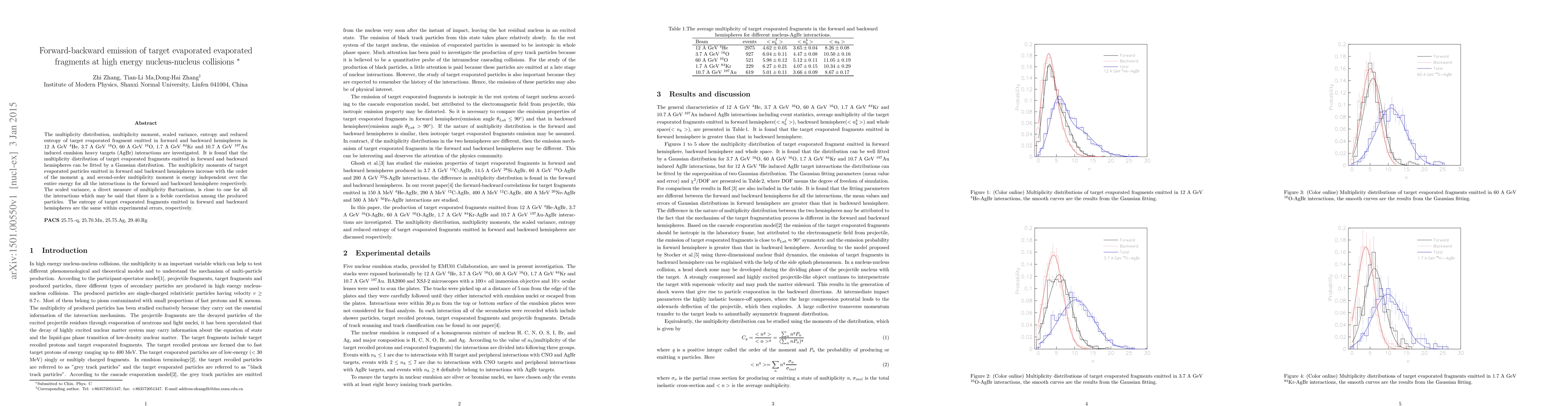 The multiplicity distribution, multiplicity moment, scaled variance, entropy and reduced entropy of target evaporated fragment emitted in forward and backward hemispheres in 12 A GeV $^{4}$He, 3.7 A GeV $^{16}$O, 60 A GeV $^{16}$O, 1.7 A GeV $^{84}$Kr and 10.7 A GeV $^{197}$Au induced emulsion heavy targets (AgBr) interactions are investigated. It is found that the multiplicity distribution of target evaporated fragments emitted in forward and backward hemispheres can be fitted by a Gaussian distribution. The multiplicity moments of target evaporated particles emitted in forward and backward hemispheres increase with the order of the moment {\em q}, and second-order multiplicity moment is energy independent over the entire energy for all the interactions in the forward and backward hemisphere respectively. The scaled variance, a direct measure of multiplicity fluctuations, is close to one for all the interactions which may be said that there is a feeble correlation among the produced particles. The entropy of target evaporated fragments emitted in forward and backward hemispheres are the same within experimental errors, respectively.