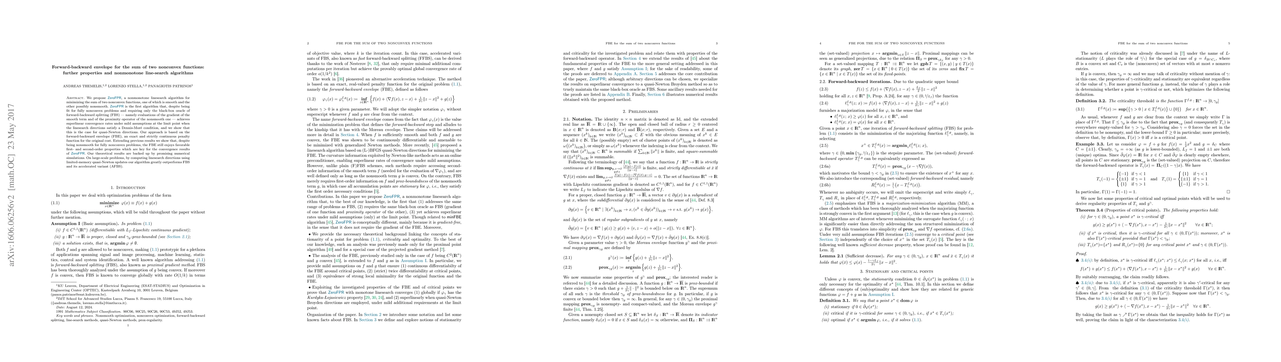 Researchers propose a new algorithm called ZeroFPR that uses a forward-backward envelope to minimize the sum of two nonconvex functions, achieving superlinear convergence rates in certain cases.