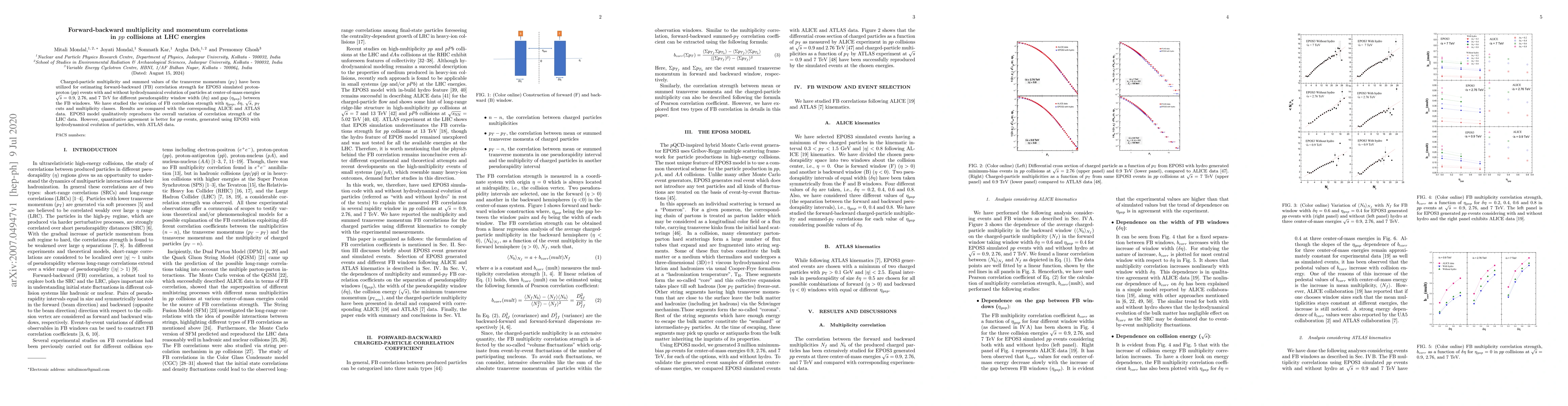 This paper investigates forward-backward multiplicity and momentum correlations in proton-proton collisions at LHC energies using the EPOS3 model, comparing simulated results with ALICE and ATLAS data. The model shows qualitative agreement with LHC data but better quantitative fit for events with hydrodynamical evolution.