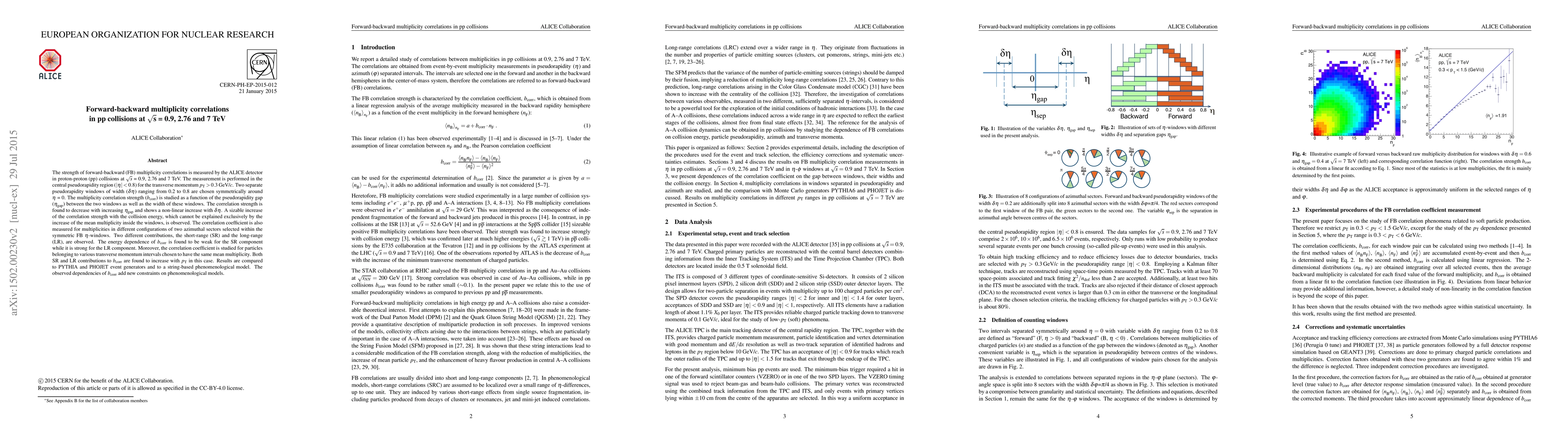 Researchers at ALICE detected a decrease in forward-backward multiplicity correlations with increasing pseudorapidity gap, a non-linear increase with width, and an energy dependence that cannot be explained solely by mean multiplicity.