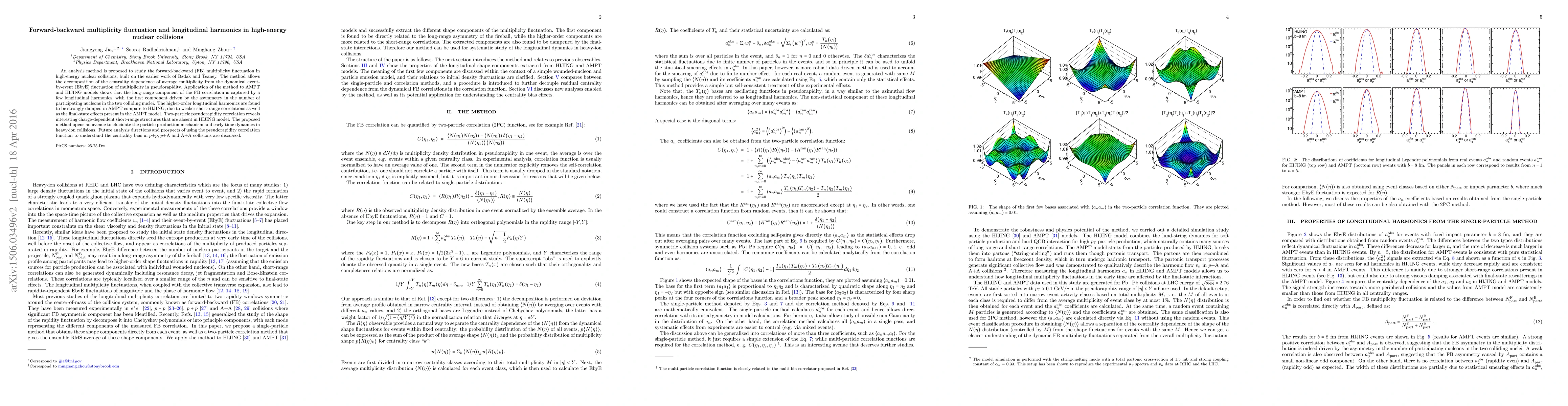 This paper proposes a novel analysis method to study forward-backward multiplicity fluctuations in high-energy nuclear collisions, revealing that the long-range FB correlation is captured by longitudinal harmonics, primarily driven by nucleon asymmetry. The method highlights differences between AMPT and HIJING models, suggesting future applications to understand collision dynamics and centrality bias across various collision types.