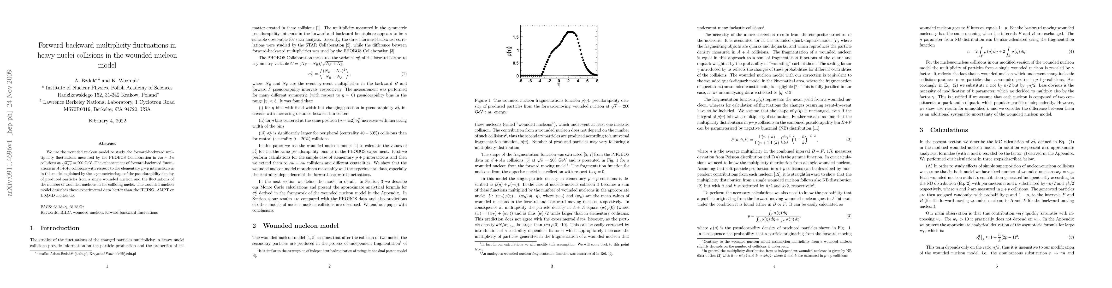 We use the wounded nucleon model to study the forward-backward multiplicity fluctuations measured by the PHOBOS Collaboration in Au+Au collisions at sqrt(s_NN)=200 GeV. The enhancement of forward-backward fluctuations in Au+Au collisions with respect to the elementary p+p interactions is in this model explained by the asymmetric shape of the pseudorapidity density of produced particles from a single wounded nucleon and the fluctuations of the number of wounded nucleons in the colliding nuclei. The wounded nucleon model describes these experimental data better than the HIJING, AMPT or UrQMD models do.