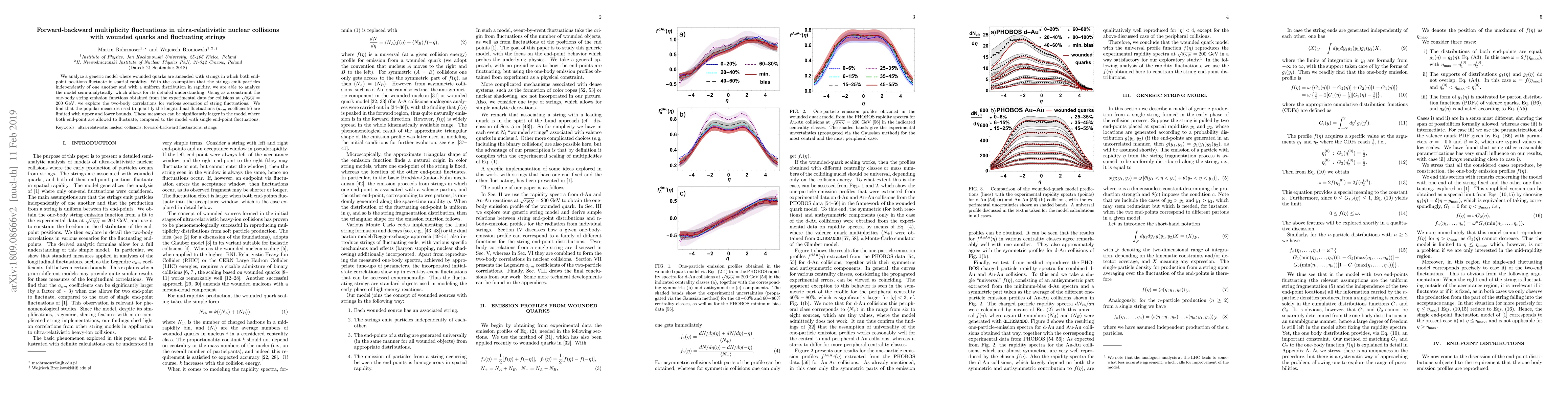 We analyze a generic model where wounded quarks are amended with strings in which both end-point positions fluctuate in spatial rapidity. With the assumption that the strings emit particles independently of one another and with a uniform distribution in rapidity, we are able to analyze the model semi-analytically, which allows for its detailed understanding. Using as a constraint the one-body string emission functions obtained from the experimental data for collisions at $\sqrt{s_{NN}}=200$ GeV, we explore the two-body correlations for various scenarios of string fluctuations. We find that the popular measures used to quantify the longitudinal fluctuations are limited with upper and lower bounds and assume close values for the most likely models of the end-point distributions, which may explain why various approaches yield here very similar results.