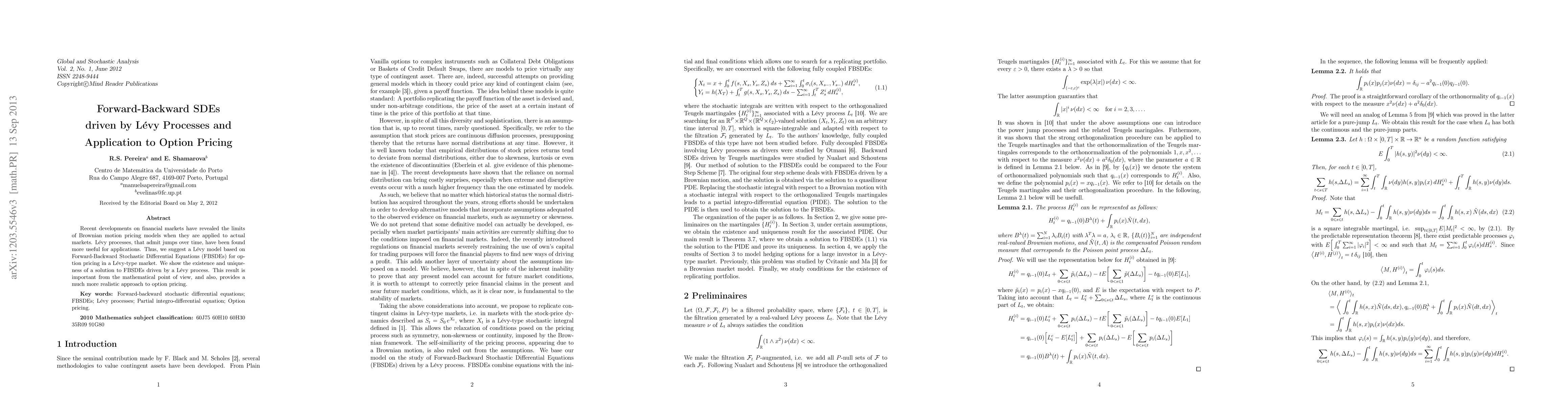 This paper proposes a Forward-Backward Stochastic Differential Equations (FBSDEs) driven by Lévy processes for option pricing, demonstrating the existence and uniqueness of solutions. This approach offers a more realistic model for financial markets compared to traditional Brownian motion models.