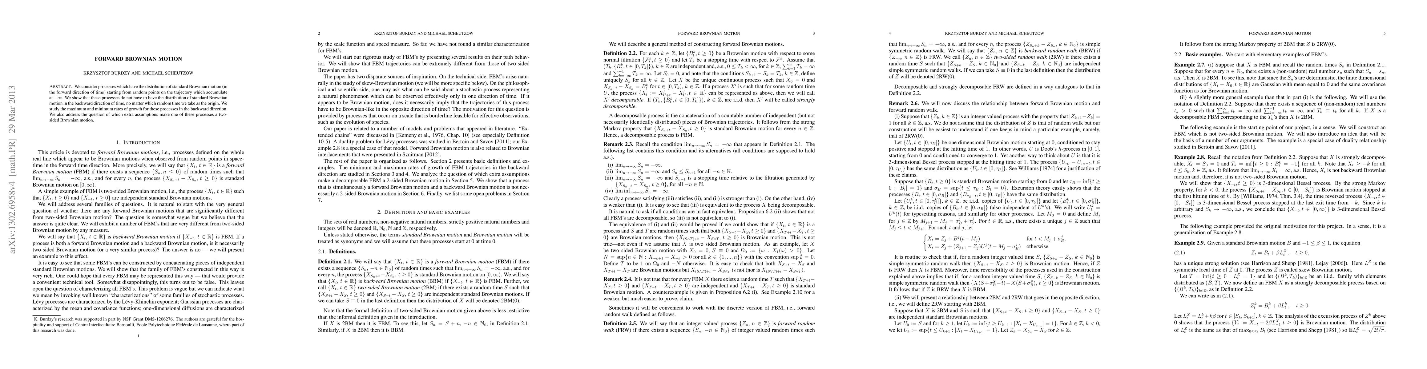 The paper presents detailed mathematical proofs and conditions for characterizing forward Brownian motion processes, extending the understanding of stochastic processes beyond standard Brownian motion.