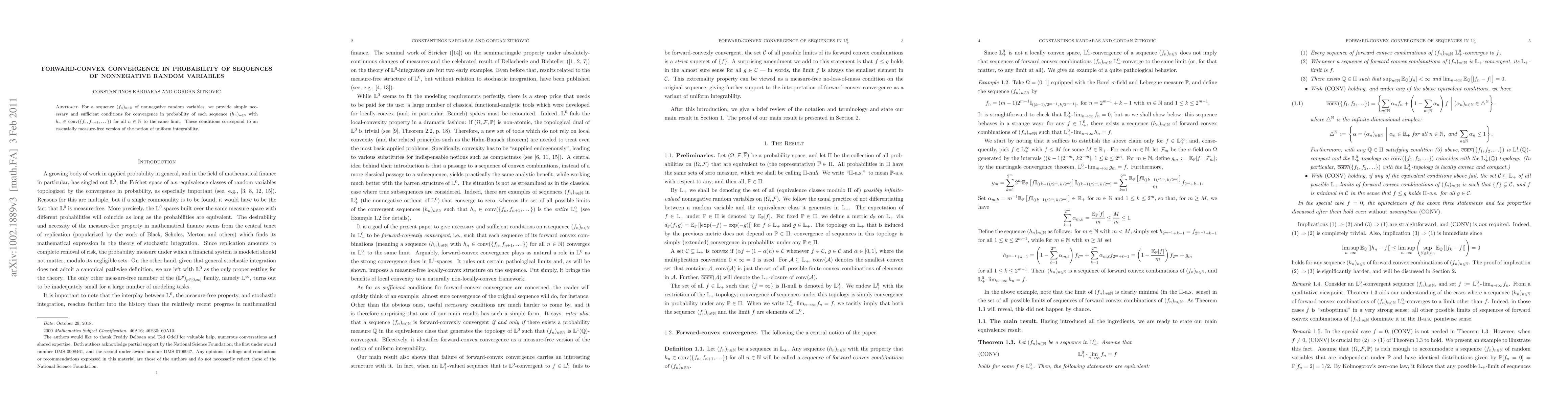 A research paper establishes necessary and sufficient conditions for sequences of nonnegative random variables to converge in probability when taking forward convex combinations. The conditions provide an essentially measure-free version of uniform integrability.