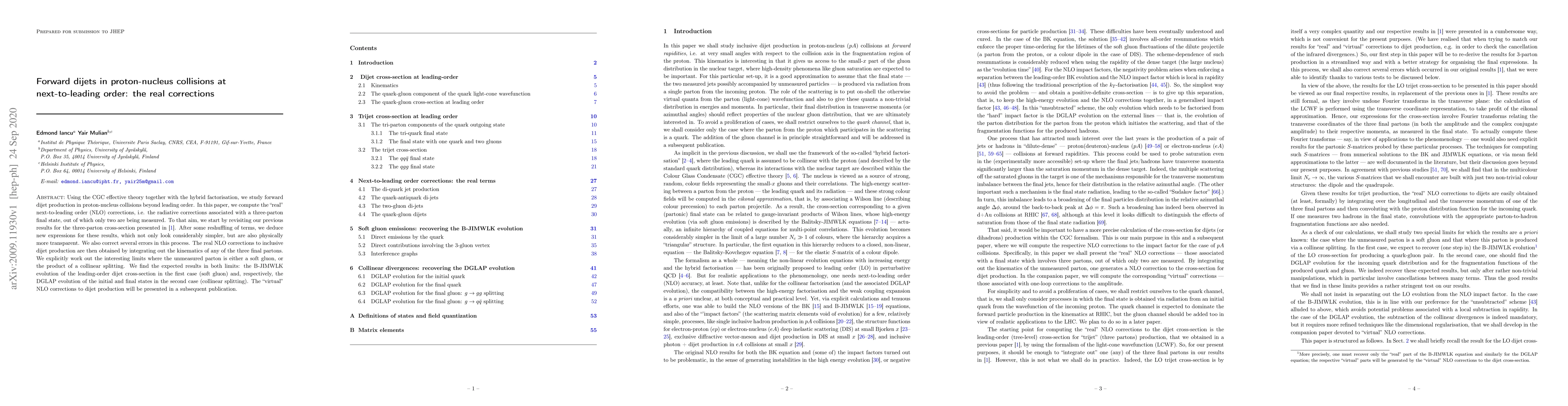 This paper computes the real next-to-leading order (NLO) corrections for forward dijet production in proton-nucleus collisions using the CGC effective theory and hybrid factorization. It simplifies and corrects previous results for three-parton cross-sections and provides new expressions for the real NLO corrections, integrating out the kinematics of the unmeasured parton in both soft gluon and collinear splitting limits.
