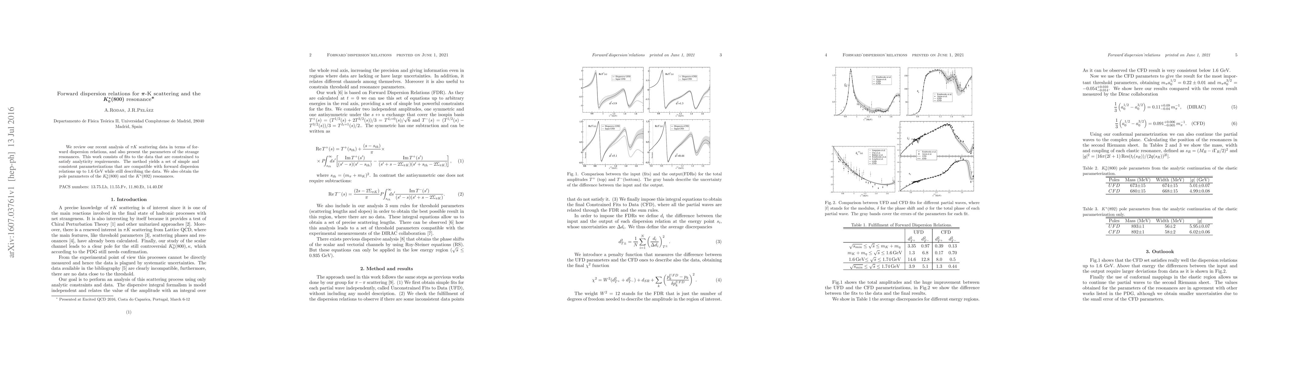 Researchers used forward dispersion relations to analyze pion-kaon scattering data, finding simple parameterizations that match the data up to 1.6 GeV and revealing pole parameters for the K*0(800) and K*(892) resonances.