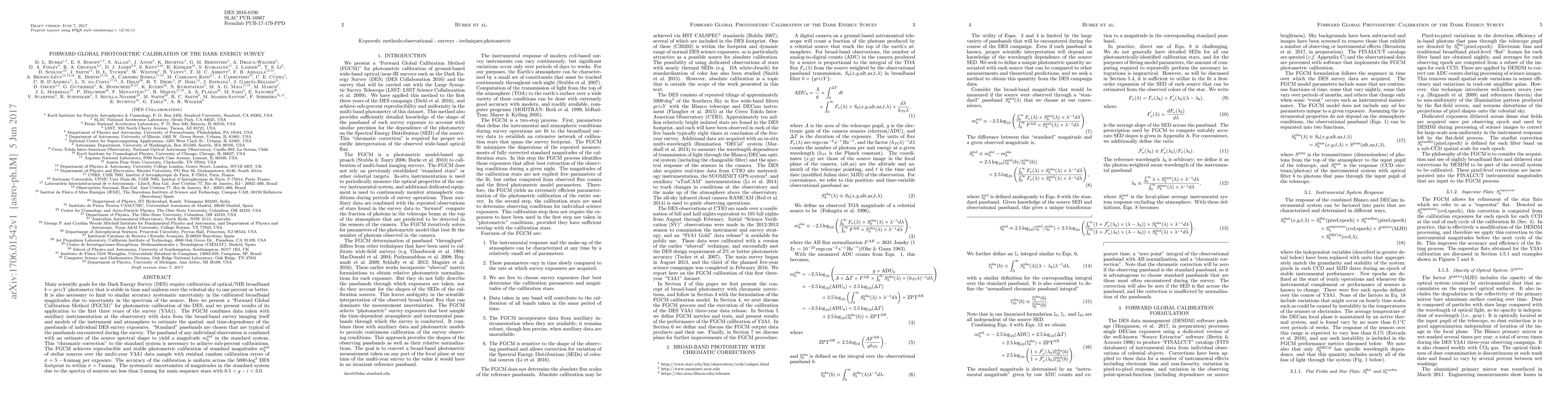 The paper introduces a "Forward Global Calibration Method (FGCM)" for the Dark Energy Survey (DES) to achieve stable and uniform photometric calibration to within 1%. The FGCM combines auxiliary data, survey imaging, and models to estimate passband variations, achieving sub-percent calibration accuracy across the entire DES footprint.