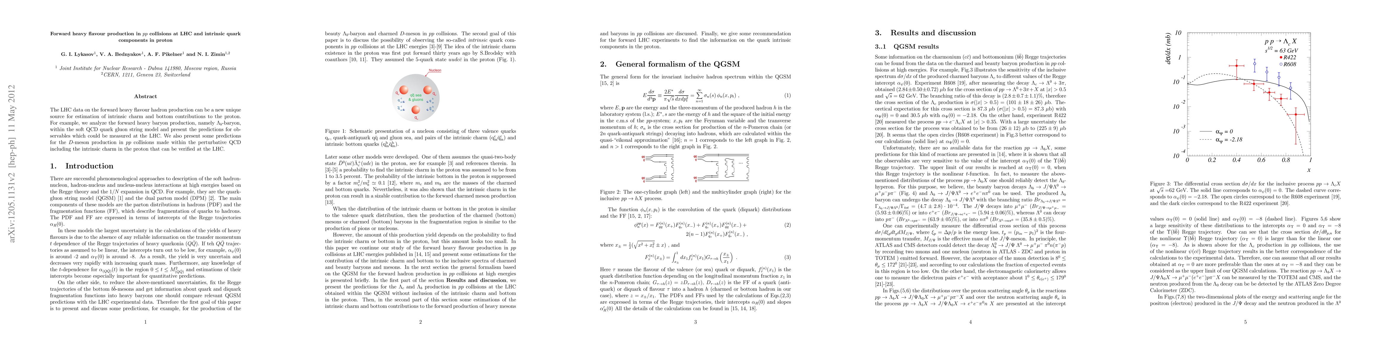 The LHC data on the forward heavy flavour hadron production can be a new unique source for estimation of intrinsic charm and bottom contributions to the proton. For example, we analyze the forward heavy baryon production, namely $\Lambda_b$-baryon, within the soft QCD quark gluon string model and present the predictions for observables which could be measured at the LHC. We also present some predictions for the $D$-meson production in $pp$ collisions made within the perturbative QCD including the intrinsic charm in the proton that can be verified at the LHC.