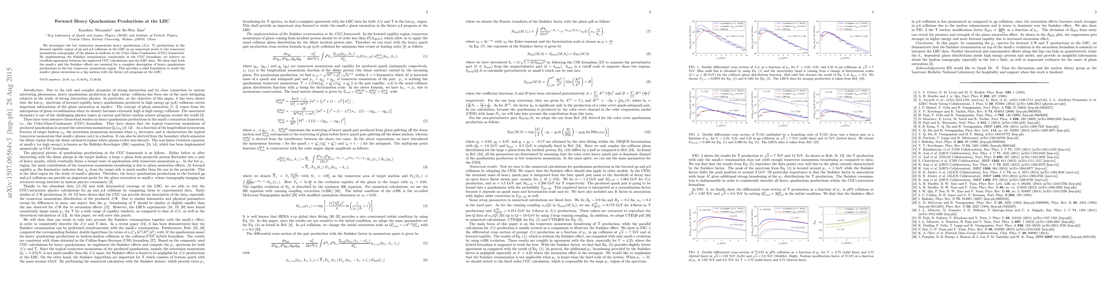 We investigate the low transverse momentum heavy quarkonium ($J/\psi$, $\Upsilon$) productions in the forward rapidity region of $pp$ and $pA$ collisions at the LHC as an important probe to the transverse momentum tomography of the gluons in hadrons in the Color Glass Condensate (CGC) framework. By implementing the Sudakov resummation consistently in the CGC formalism, we achieve an excellent agreement between the improved CGC calculations and the LHC data. We show that both the small-$x$ and the Sudakov effects are essential for a complete description of heavy quarkonium productions in the low transverse momentum region. This provides a solid foundation to study the small-$x$ gluon saturation in a big nucleus with the future $pA$ programs at the LHC.