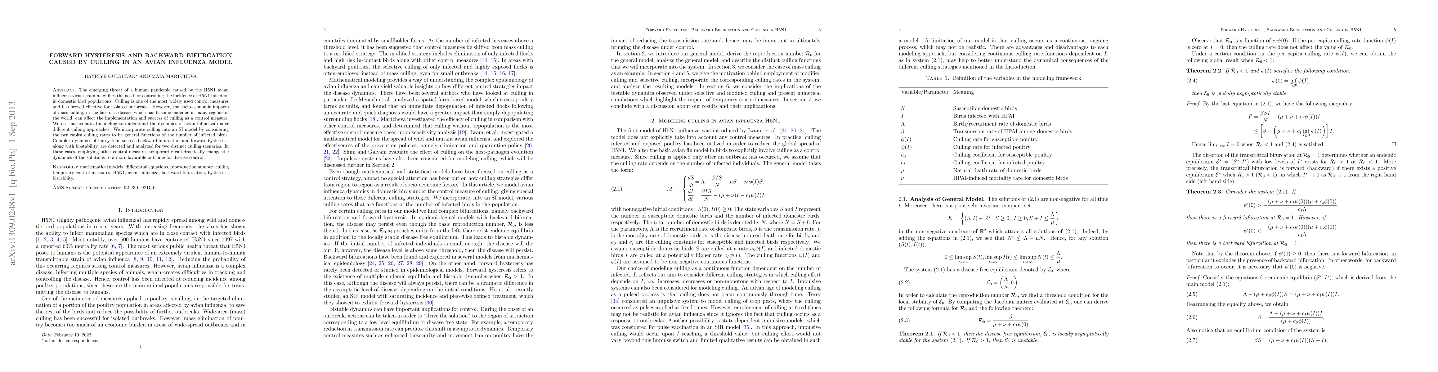 This paper investigates the complex dynamics of avian influenza under culling strategies using mathematical modeling, revealing phenomena like forward hysteresis and backward bifurcation. The study finds that temporary use of alternative control measures can significantly improve disease control outcomes.