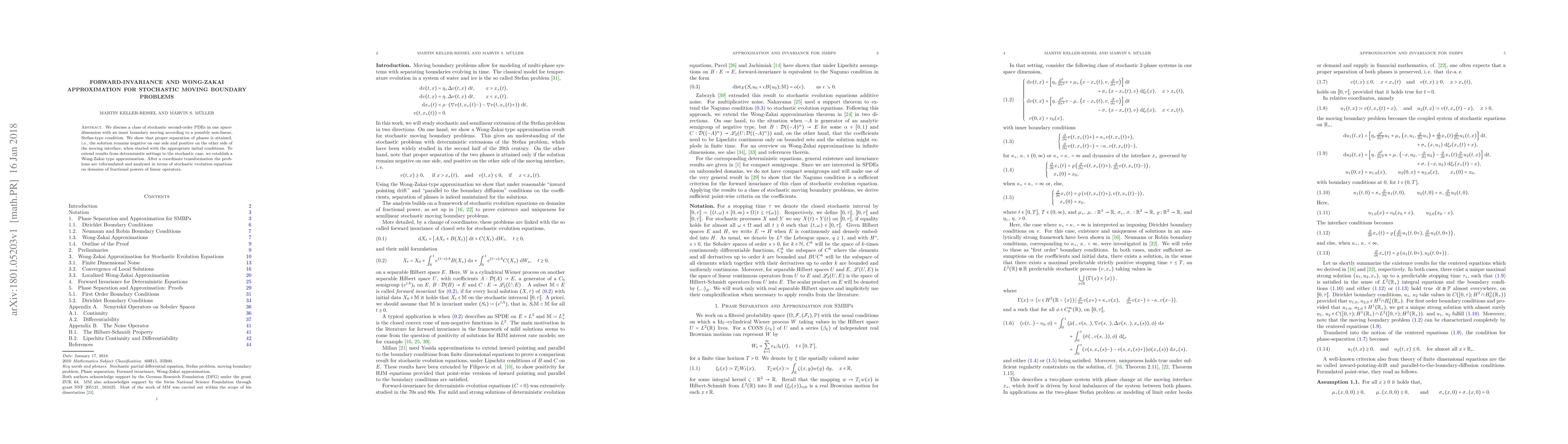 We discuss a class of stochastic second-order PDEs in one space-dimension with an inner boundary moving according to a possibly non-linear, Stefan-type condition. We show that proper separation of phases is attained, i.e., the solution remains negative on one side and positive on the other side of the moving interface, when started with the appropriate initial conditions. To extend results from deterministic settings to the stochastic case, we establish a Wong-Zakai type approximation. After a coordinate transformation the problems are reformulated and analysed in terms of stochastic evolution equations on domains of fractional powers of linear operators.