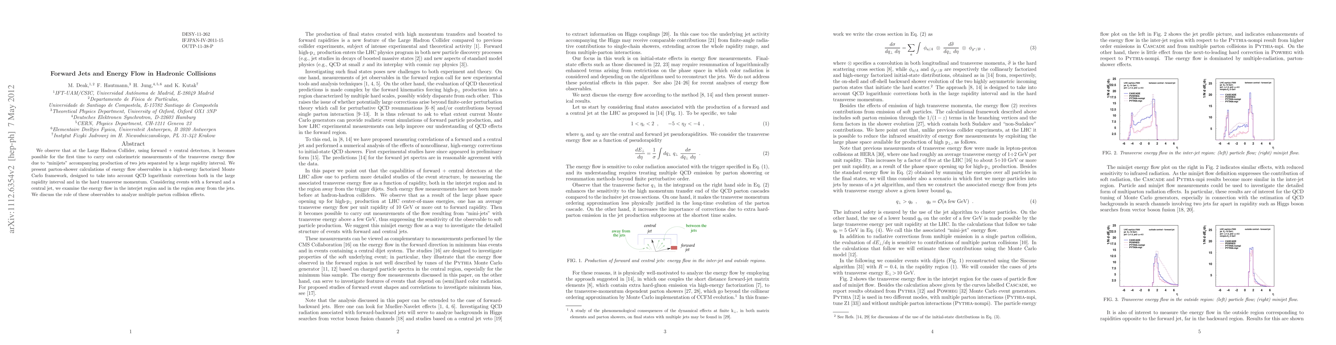 We observe that at the Large Hadron Collider, using forward + central detectors, it becomes possible for the first time to carry out calorimetric measurements of the transverse energy flow due to "minijets" accompanying production of two jets separated by a large rapidity interval. We present parton-shower calculations of energy flow observables in a high-energy factorized Monte Carlo framework, designed to take into account QCD logarithmic corrections both in the large rapidity interval and in the hard transverse momentum. Considering events with a forward and a central jet, we examine the energy flow in the interjet region and in the region away from the jets. We discuss the role of these observables to analyze multiple parton collision effects.
