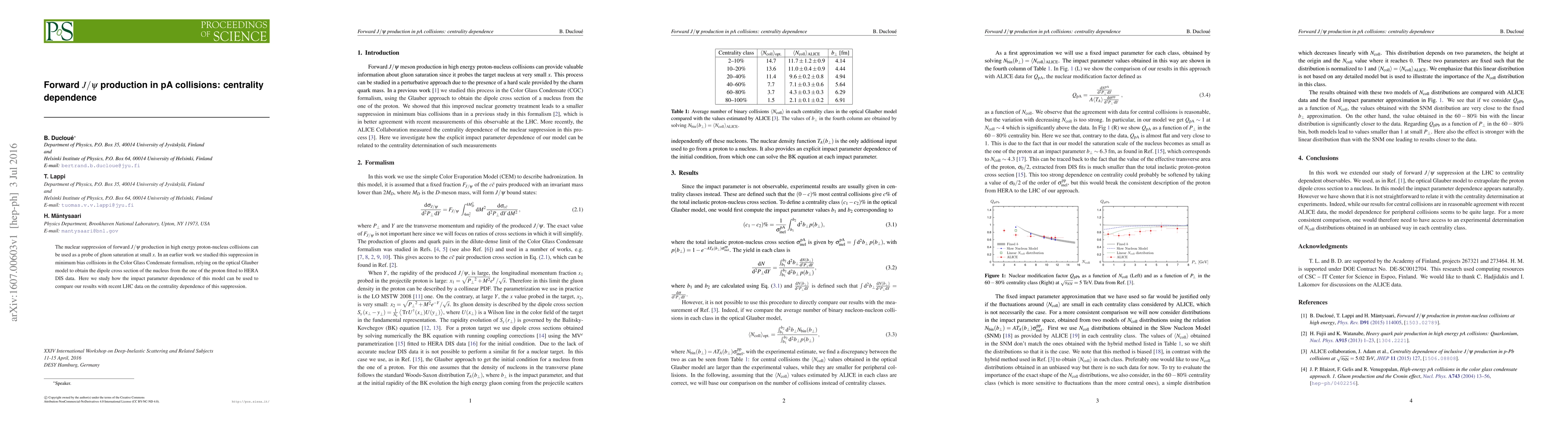 This paper investigates the nuclear suppression of forward $J/\psi$ production in proton-nucleus collisions to probe gluon saturation at small $x$, comparing the centrality dependence of suppression with recent LHC data using the Color Glass Condensate formalism and the optical Glauber model.