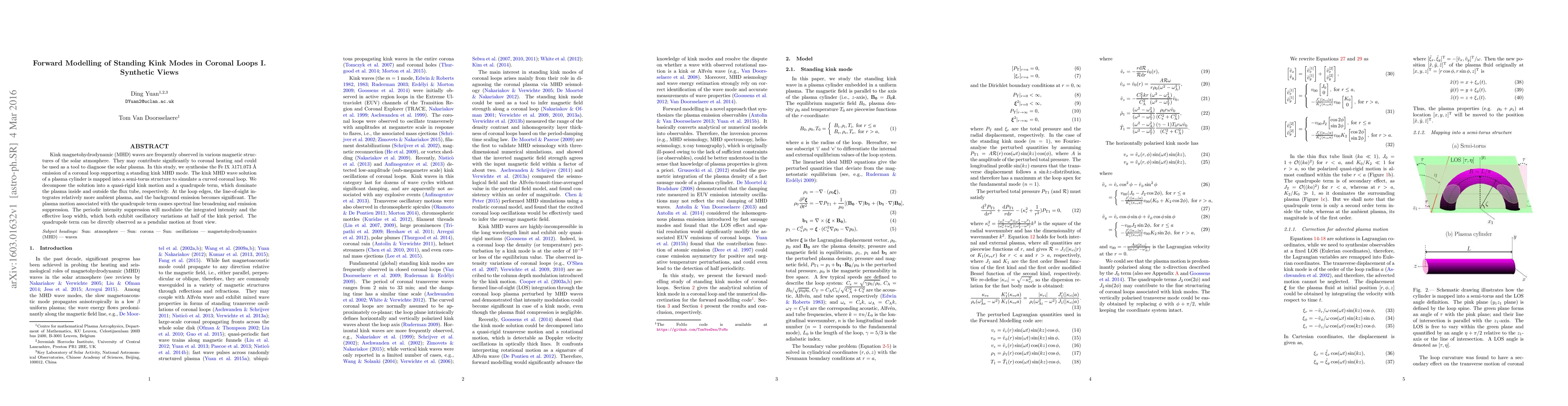 This study synthesizes the \ion{Fe}{9} $\lambda171.073$ emission from a coronal loop with a standing kink mode, revealing oscillatory variations in integrated intensity and effective loop width due to periodic intensity suppression. The observed pendular motion and spectral line broadening are attributed to the quadrupole term in the kink magnetohydrodynamic wave solution.