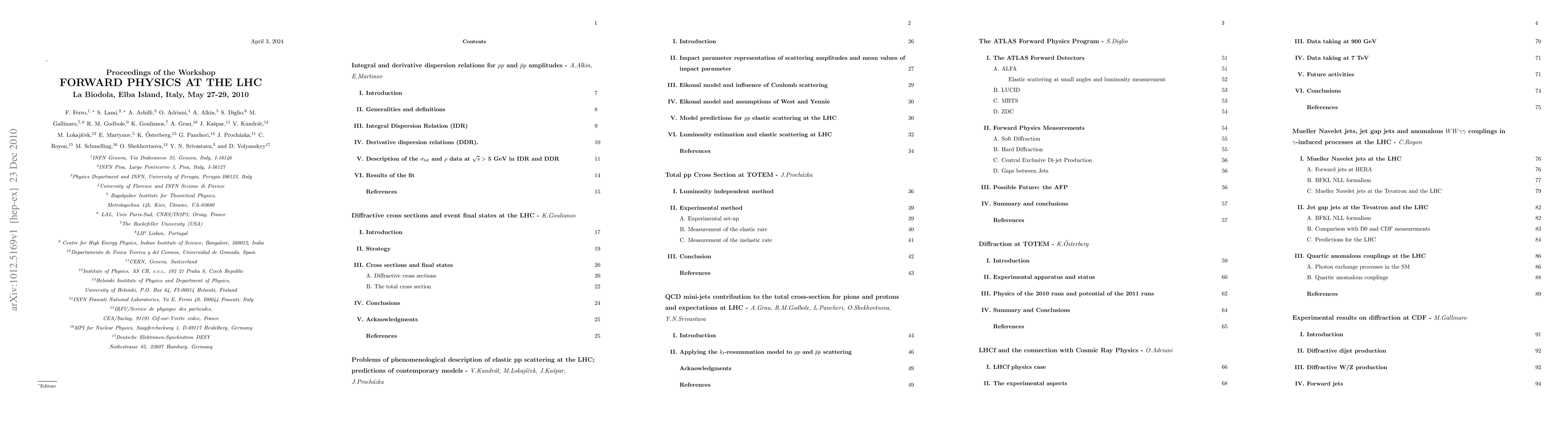 The papers review the main theoretical and experimental aspects of the Forward Physics at the Large Hadron Collider.