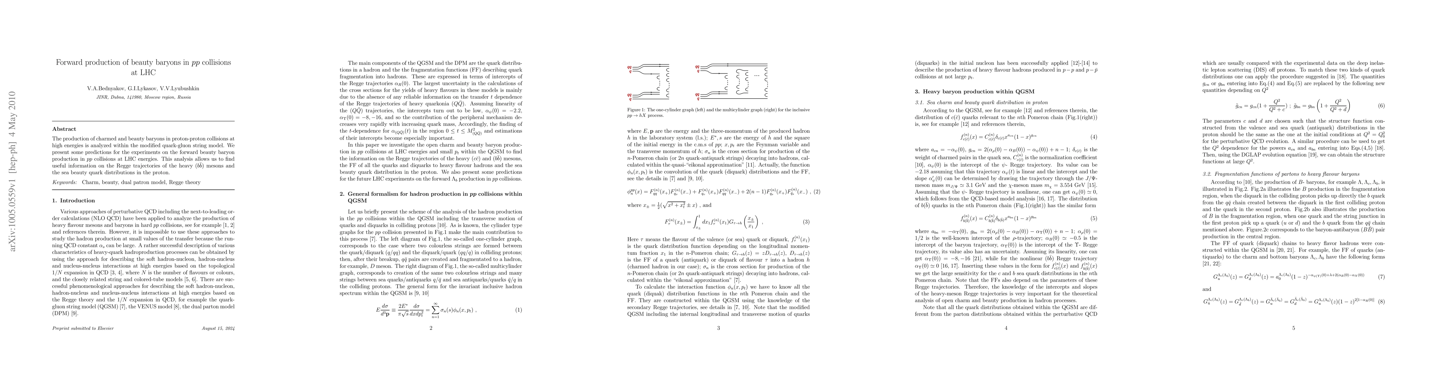 This paper analyzes the production of beauty baryons in high-energy proton-proton collisions using a modified quark-gluon string model, providing predictions for forward beauty baryon production at LHC energies and insights into heavy meson Regge trajectories and sea beauty quark distributions.