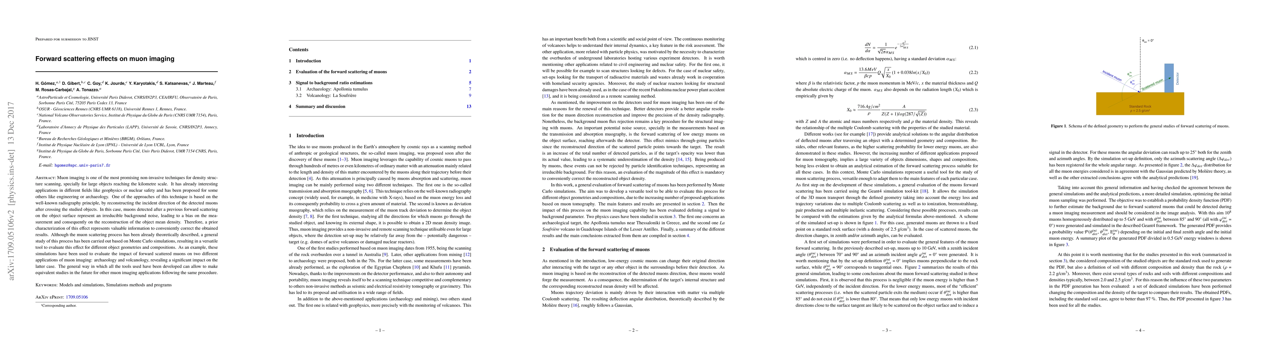 This paper investigates the impact of forward scattering on muon imaging, a non-invasive technique for density structure scanning, using Monte Carlo simulations. It highlights the significant bias introduced by forward scattered muons, particularly affecting applications like volcanology, and proposes a method to correct these results for improved accuracy.