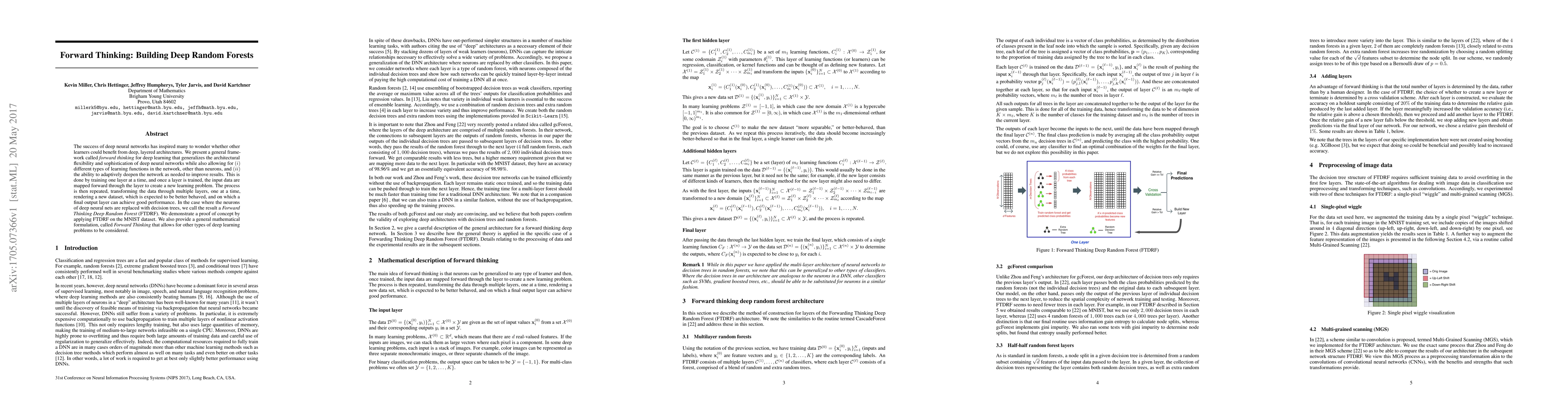 The paper introduces a framework called forward thinking for deep learning that allows for adaptive deepening of networks and diverse learning functions, exemplified by the Forward Thinking Deep Random Forest (FTDRF). The FTDRF replaces neurons with decision trees and demonstrates improved performance on the MNIST dataset.