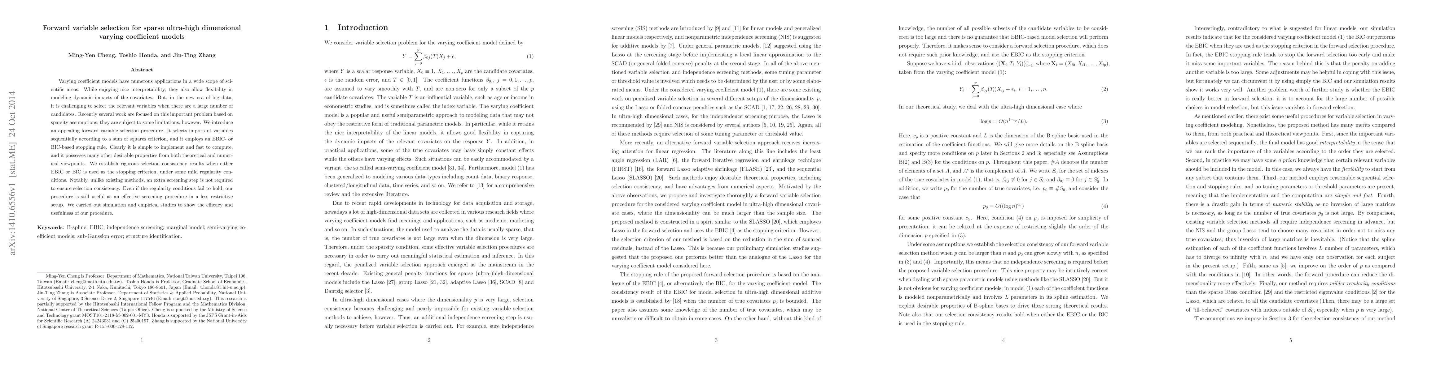The paper presents a novel, theoretically consistent, and computationally efficient forward variable selection method for ultra-high dimensional varying coefficient models.