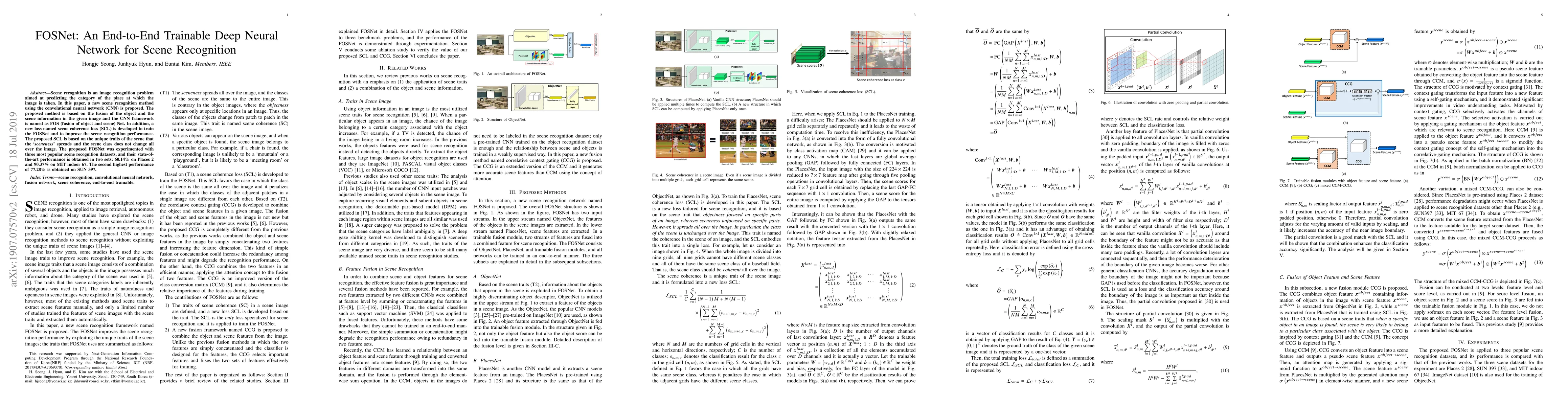 FOSNet is a novel end-to-end trainable CNN for scene recognition that fuses object and scene information, achieving state-of-the-art performance on two datasets with a new scene coherence loss designed to enhance scene recognition accuracy.