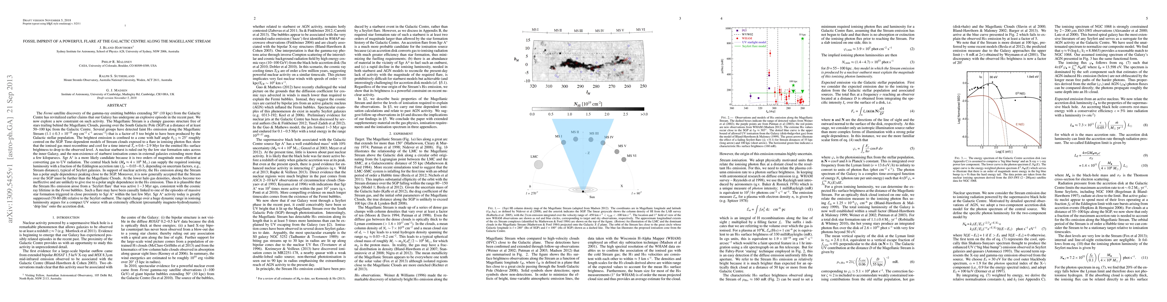The paper presents evidence for a powerful past flare from the Milky Way's central black hole, Sgr A*, based on unusually bright H-alpha emission along the Magellanic Stream. Using time-dependent models, the authors argue that a nuclear starburst is unlikely, and Sgr A* activity is more probable, as it can efficiently convert gas into UV radiation. The flare is estimated to have occurred 1-3 Myr ago, aligning with the lifetime of cosmic rays in Fermi bubbles, and the emission's polar angle dependence supports this hypothesis.
