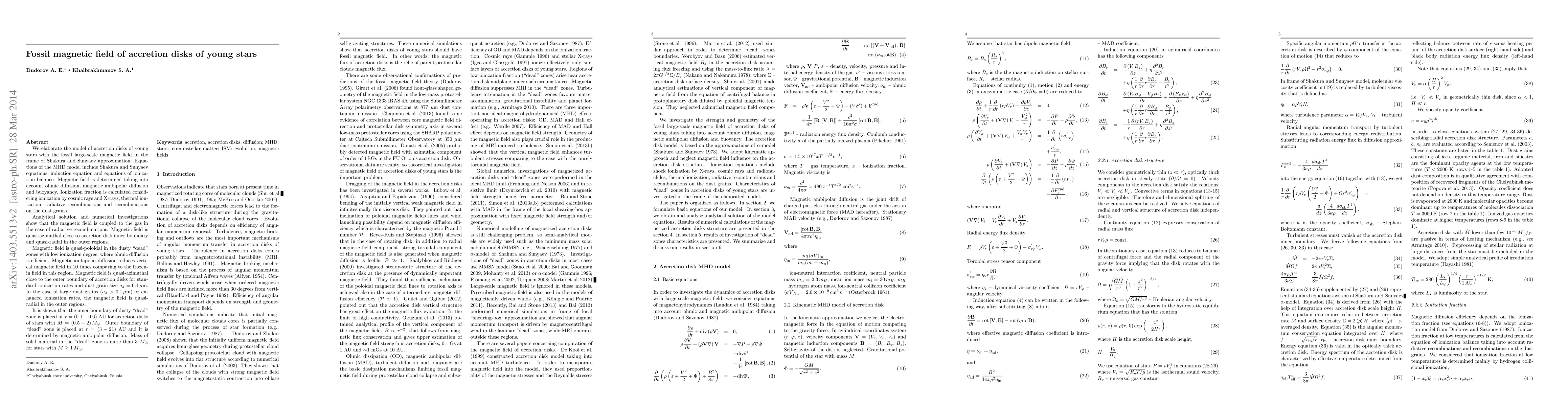 This work extends previous research by incorporating detailed magnetic diffusion mechanisms and ionization processes, offering a more nuanced understanding of fossil magnetic fields in young stellar accretion disks.
