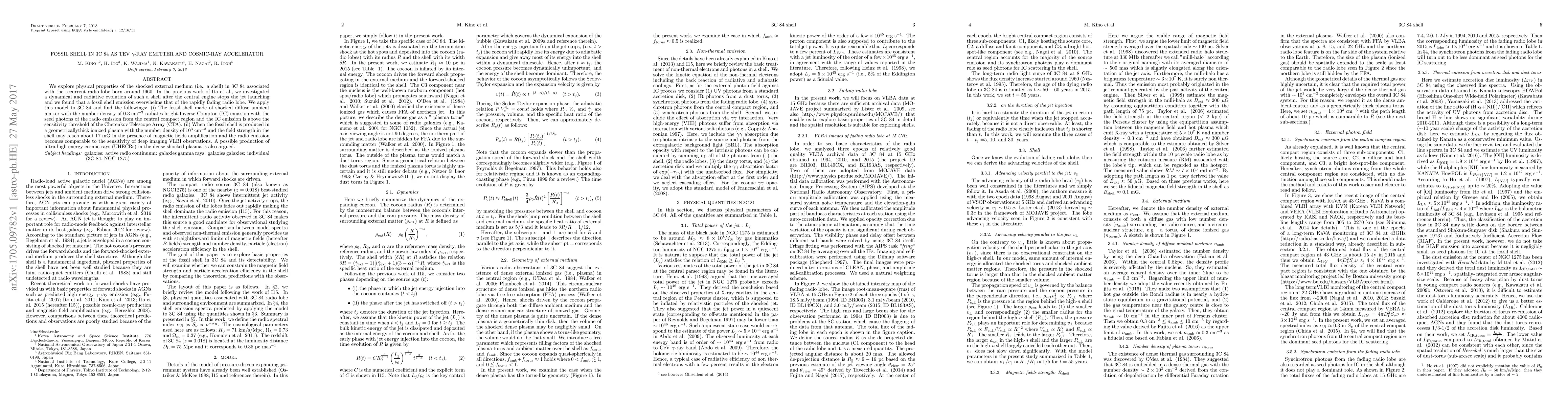 Researchers found that a fossil shell in the galaxy 3C 84 could be a source of TeV gamma rays and ultra-high energy cosmic rays, due to the interaction of shocked ambient matter with magnetic fields.