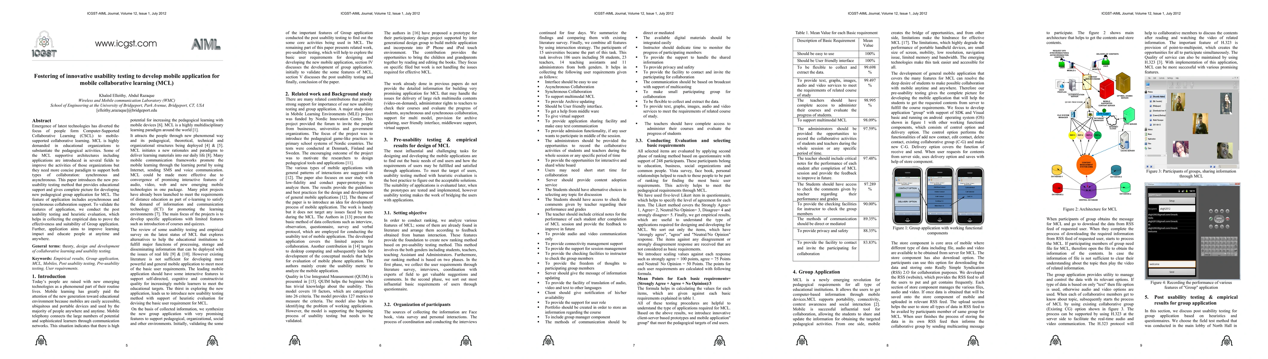Emergence of latest technologies has diverted the focus of people form Computer-Supported Collaborative Learning (CSCL) to mobile supported collaborative learning. MCL is highly demanded in educational organizations to substantiate the pedagogical activities. Some of the MCL supportive architectures including applications are introduced in several fields to improve the activities of those organizations, but they need more concise paradigm to support both types of collaboration: synchronous and asynchronous. This paper introduces the new preusability testing method that provides educational support and gives complete picture for developing new pedagogical group application for MCL. The feature of application includes asynchronous and synchronous collaboration support. To validate the features of application, we conduct the post usability testing and heuristic evaluation, which helps in collecting the empirical data to prove the effectiveness and suitability of Group application. Further, application aims to improve learning impact and educate people at anytime and anywhere.