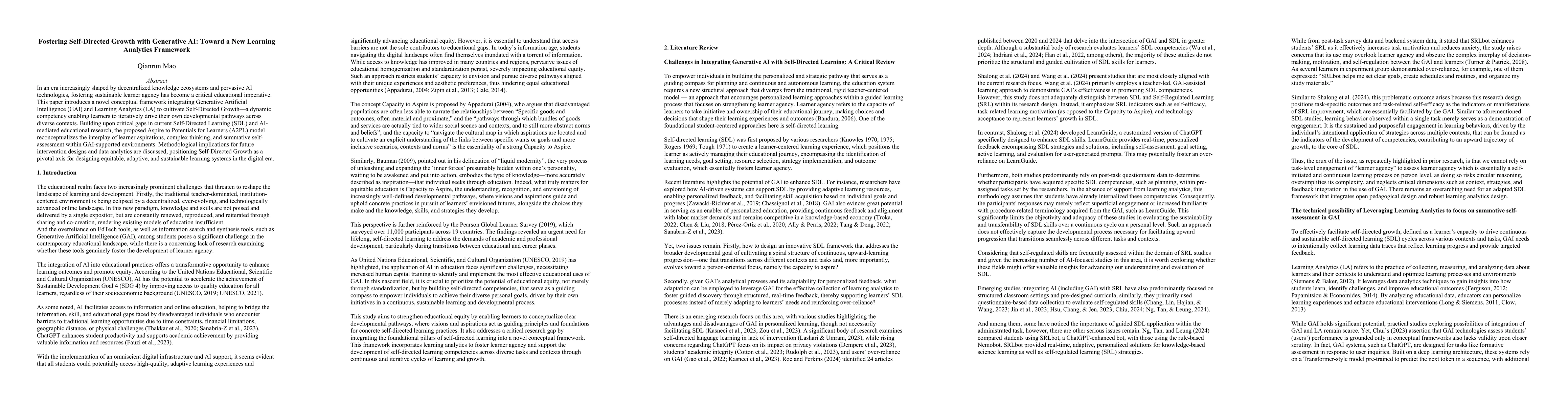 The paper introduces a novel conceptual framework, A2PL, integrating Generative Artificial Intelligence and Learning Analytics to cultivate Self-Directed Growth in learners.