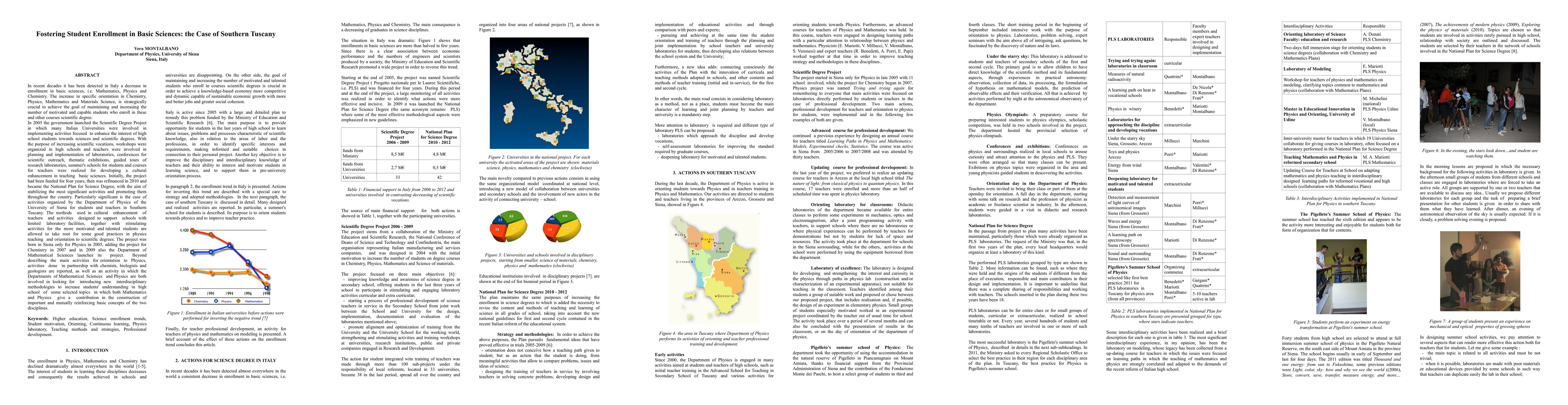 In recent decades it has been detected in Italy a decrease in enrollment in basic sciences, i.e. Mathematics, Physics and Chemistry. The increase in specific orientation is strategically crucial to achieve the goal of maintaining and increasing the number of motivated and capable students who enroll in these courses. With the purpose of increasing scientific vocations, workshops were organized in high schools and teachers involved in planning and implementation of laboratories, conferences for scientific outreach, thematic exhibitions, guided tours of research laboratories, summer's schools for students and courses for teachers were realized for developing a cultural enhancement in teaching basic sciences. Particularly significant is the case of activities organized by the Department of Physics of the University of Siena for students and teachers in Southern Tuscany. The methods used in cultural enhancement of teachers and activities designed to support schools with limited laboratory facilities, together with stimulating activities for motivated students are allowed to take root for some good practices in physics teaching and orientation to scientific degrees. Beyond describing the main activities for orientation to Physics, activities done in partnership with chemists, biologists and geologists are reported, as well as an activity in which the Departments of Mathematical Sciences and Physics are both involved in looking for introducing new interdisciplinary methodologies to increase students' understanding in high school of some selected topics in which both disciplines give a contribution in the construction of important and mutually reinforcing basic concepts.