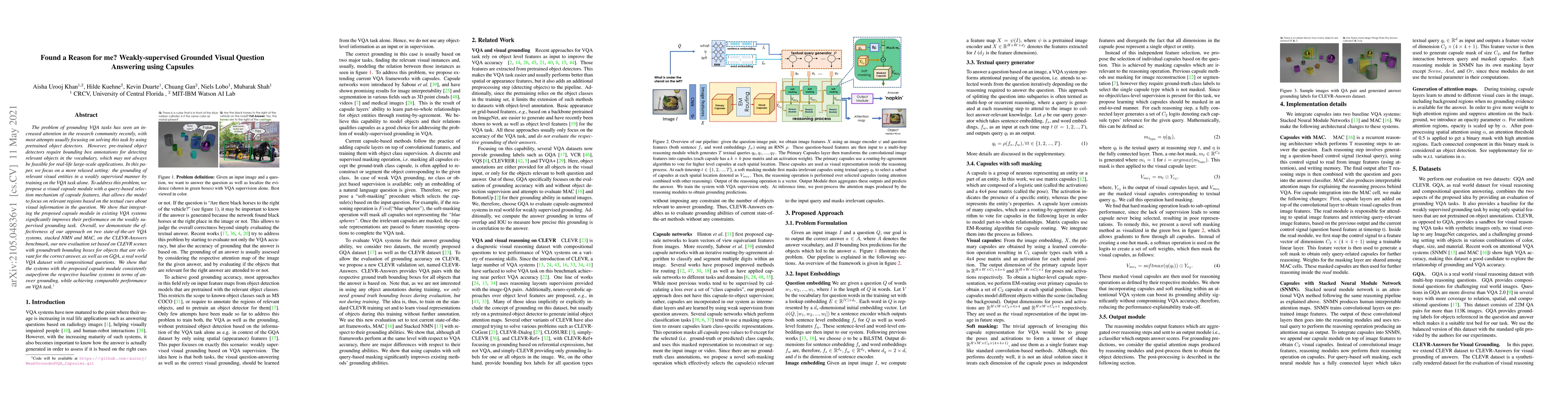 Researchers propose a new approach to visual question answering using capsules that enable weakly-supervised grounding of relevant visual entities, outperforming existing systems on VQA tasks and benchmark datasets.