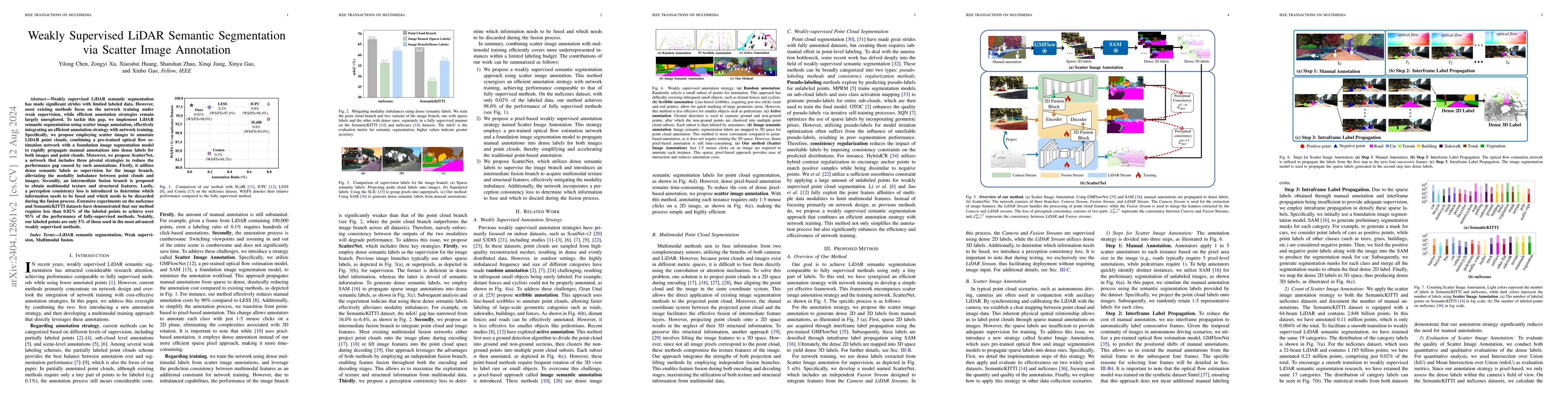 This paper presents a method for LiDAR semantic segmentation using weakly supervised learning, leveraging scattered image annotations and a foundation model (SAM) to generate pseudo labels. It introduces MM-ScatterNet, a network that integrates point cloud and image features with consistency constraints, achieving near-full performance with minimal labeled data on SemanticKITTI and NuScenes datasets.