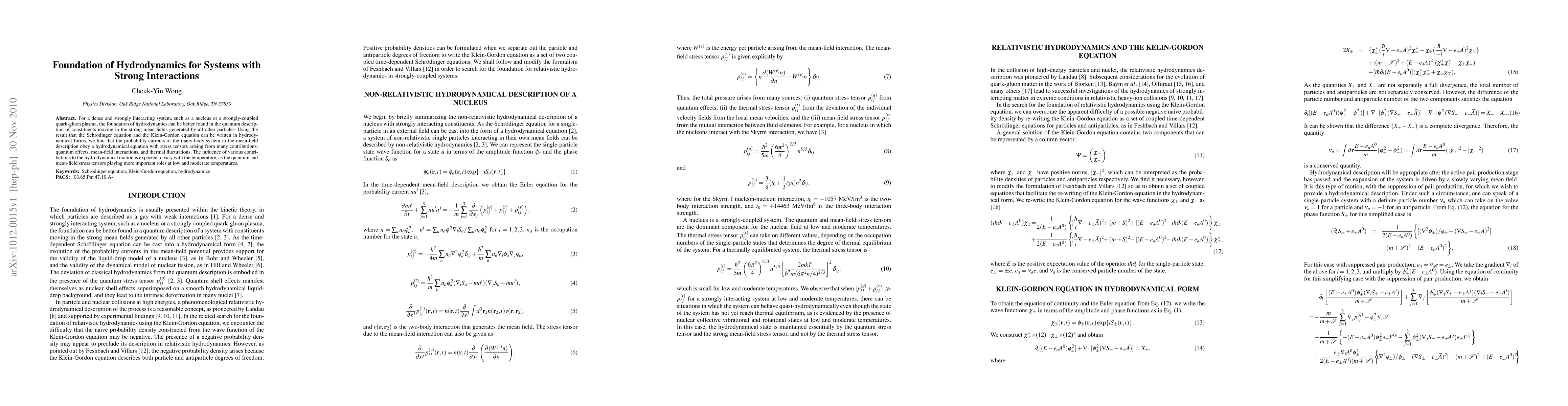 For a dense and strongly interacting system, such as a nucleus or a strongly-coupled quark-gluon plasma, the foundation of hydrodynamics can be better found in the quantum description of constituents moving in the strong mean fields generated by all other particles. Using the result that the Schroedinger equation and the Klein-Gordon equation can be written in hydrodynamical forms, we find that the probability currents of the many-body system in the mean-field description obey a hydrodynamical equation with stress tensors arising from many contributions: quantum effects, mean-field interactions, and thermal fluctuations. The influence of various contributions to the hydrodynamical motion is expected to vary with the temperature, as the quantum and mean-field stress tensors playing more important roles at low and moderate temperatures.