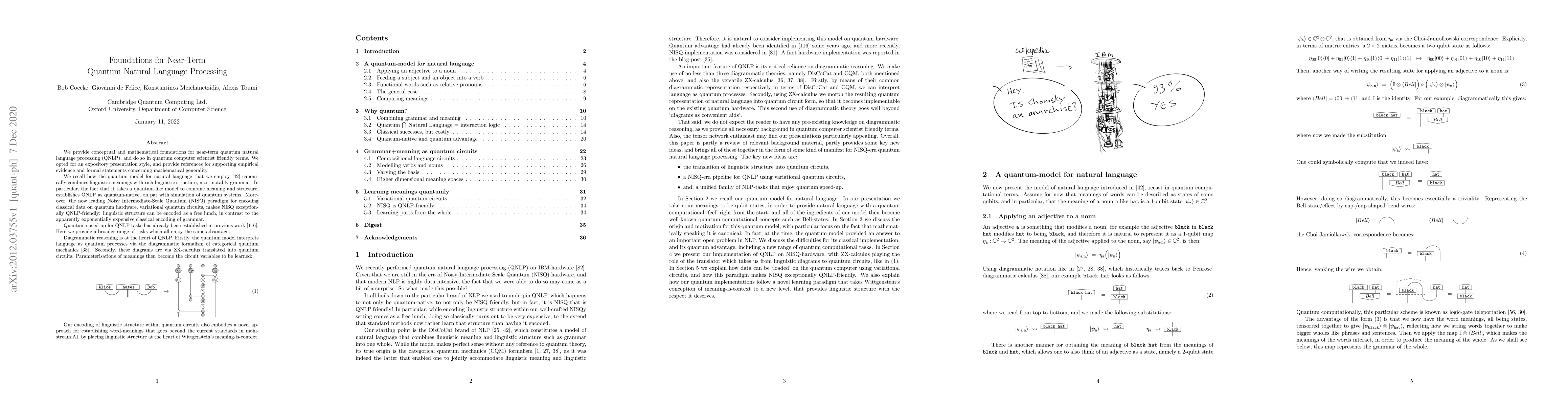 This research paper establishes foundational concepts for near-term quantum natural language processing (QNLP), showing that a quantum model can combine linguistic meanings with structure, potentially leading to faster processing times for QNLP tasks.