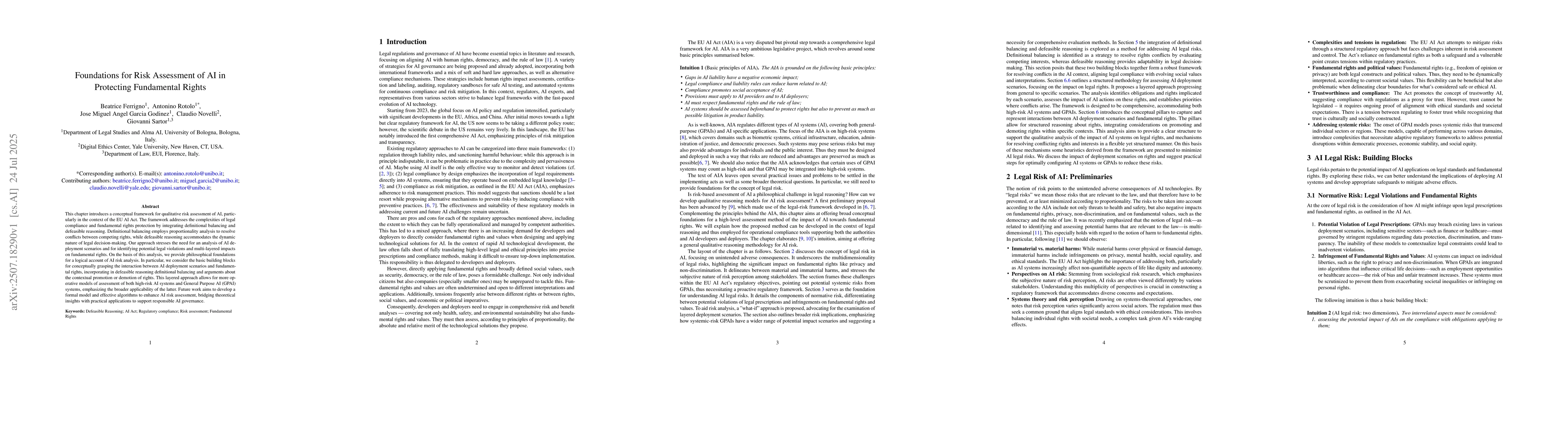This chapter introduces a conceptual framework for qualitative risk assessment of AI, particularly in the context of the EU AI Act. The framework addresses the complexities of legal compliance and fundamental rights protection by itegrating definitional balancing and defeasible reasoning. Definitional balancing employs proportionality analysis to resolve conflicts between competing rights, while defeasible reasoning accommodates the dynamic nature of legal decision-making. Our approach stresses the need for an analysis of AI deployment scenarios and for identifying potential legal violations and multi-layered impacts on fundamental rights. On the basis of this analysis, we provide philosophical foundations for a logical account of AI risk analysis. In particular, we consider the basic building blocks for conceptually grasping the interaction between AI deployment scenarios and fundamental rights, incorporating in defeasible reasoning definitional balancing and arguments about the contextual promotion or demotion of rights. This layered approach allows for more operative models of assessment of both high-risk AI systems and General Purpose AI (GPAI) systems, emphasizing the broader applicability of the latter. Future work aims to develop a formal model and effective algorithms to enhance AI risk assessment, bridging theoretical insights with practical applications to support responsible AI governance.