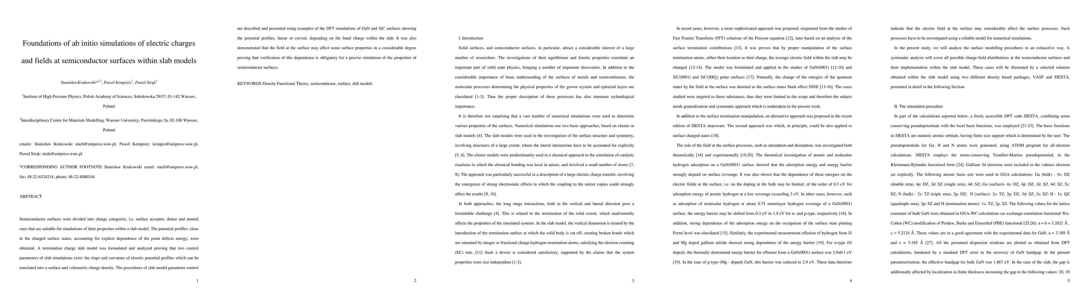 Researchers developed a method to simulate electric charges and fields at semiconductor surfaces using slab models, revealing two key control parameters that affect simulation results. The study highlights the importance of considering surface charge effects on semiconductor properties.