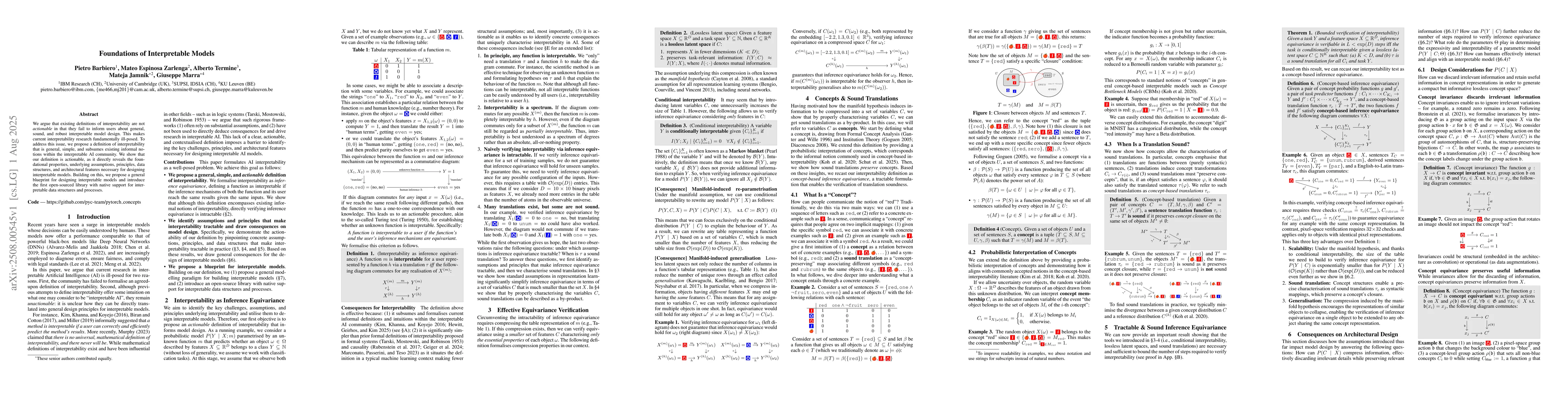 The paper proposes a new definition of interpretability based on inference equivariance, which is verifiable in fewer than exponential steps under certain conditions. It introduces a blueprint for interpretable models and an open-sourced library for implementing these models.