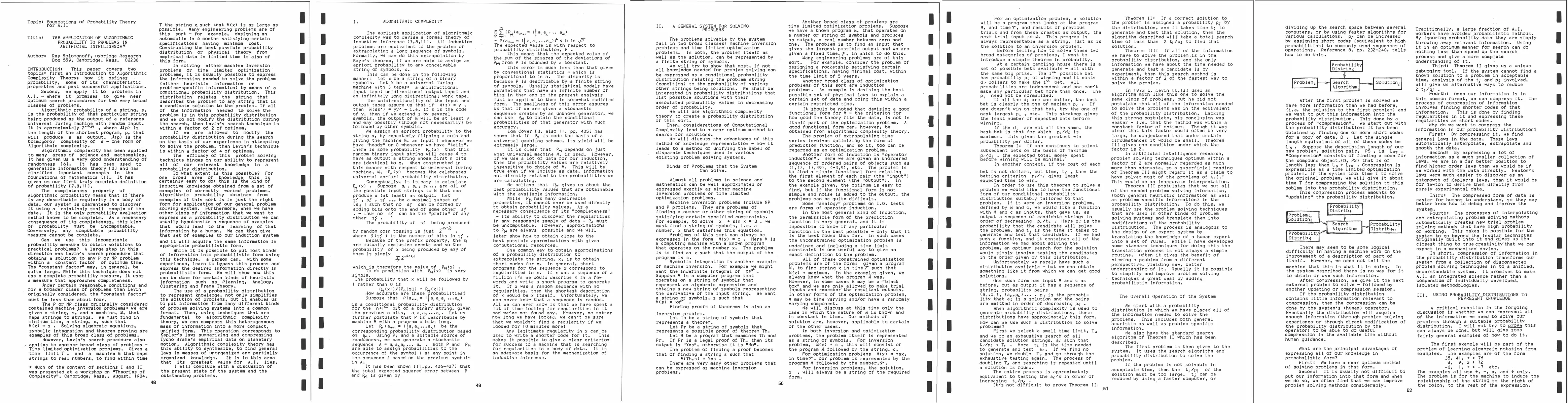 This paper covers two topics: first an introduction to Algorithmic Complexity Theory: how it defines probability, some of its characteristic properties and past successful applications. Second, we apply it to problems in A.I. - where it promises to give near optimum search procedures for two very broad classes of problems.