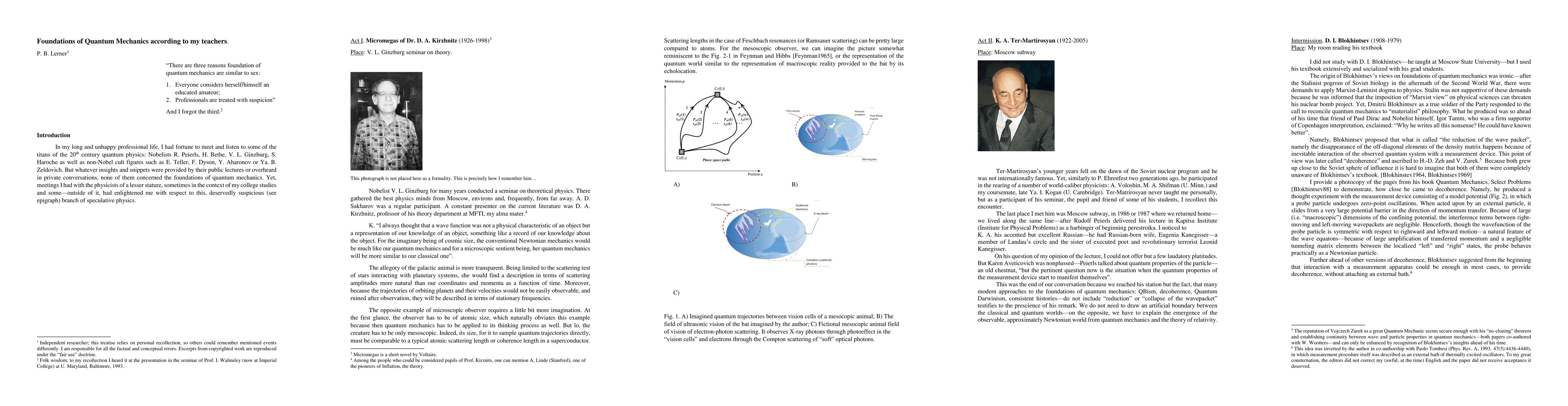 These are author's recollections of informal discussions on foundations of quantum mechanics, which happened in his presence in 1970-80s