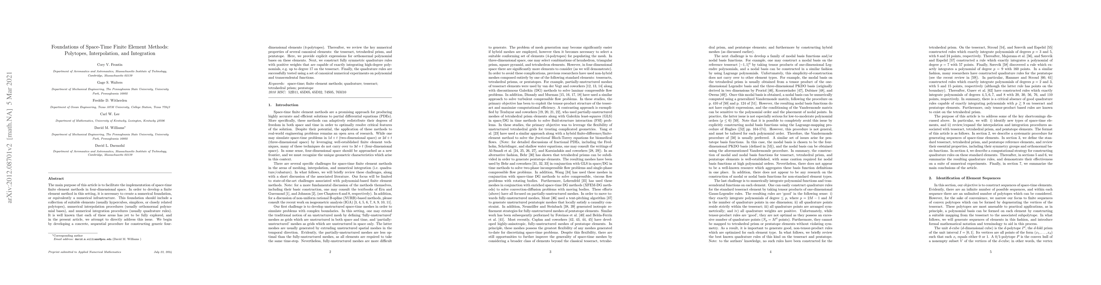 The main purpose of this article is to facilitate the implementation of space-time finite element methods in four-dimensional space. In order to develop a finite element method in this setting, it is necessary to create a numerical foundation, or equivalently a numerical infrastructure. This foundation should include a collection of suitable elements (usually hypercubes, simplices, or closely related polytopes), numerical interpolation procedures (usually orthonormal polynomial bases), and numerical integration procedures (usually quadrature rules). It is well known that each of these areas has yet to be fully explored, and in the present article, we attempt to directly address this issue. We begin by developing a concrete, sequential procedure for constructing generic four-dimensional elements (4-polytopes). Thereafter, we review the key numerical properties of several canonical elements: the tesseract, tetrahedral prism, and pentatope. Here, we provide explicit expressions for orthonormal polynomial bases on these elements. Next, we construct fully symmetric quadrature rules with positive weights that are capable of exactly integrating high-degree polynomials, e.g. up to degree 17 on the tesseract. Finally, the quadrature rules are successfully tested using a set of canonical numerical experiments on polynomial and transcendental functions.