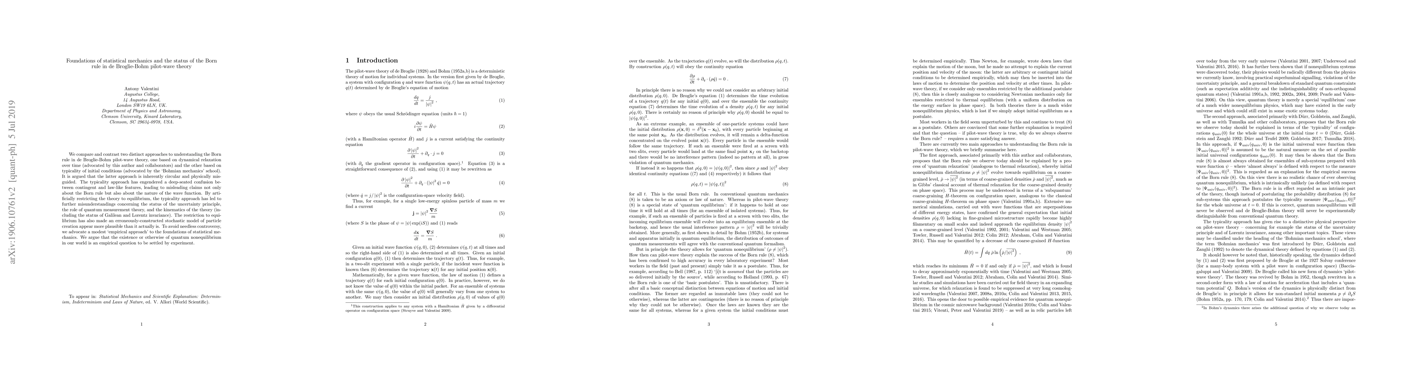 We compare and contrast two distinct approaches to understanding the Born rule in de Broglie-Bohm pilot-wave theory, one based on dynamical relaxation over time (advocated by this author and collaborators) and the other based on typicality of initial conditions (advocated by the 'Bohmian mechanics' school). It is argued that the latter approach is inherently circular and physically misguided. The typicality approach has engendered a deep-seated confusion between contingent and law-like features, leading to misleading claims not only about the Born rule but also about the nature of the wave function. By artificially restricting the theory to equilibrium, the typicality approach has led to further misunderstandings concerning the status of the uncertainty principle, the role of quantum measurement theory, and the kinematics of the theory (including the status of Galilean and Lorentz invariance). The restriction to equilibrium has also made an erroneously-constructed stochastic model of particle creation appear more plausible than it actually is. To avoid needless controversy, we advocate a modest 'empirical approach' to the foundations of statistical mechanics. We argue that the existence or otherwise of quantum nonequilibrium in our world is an empirical question to be settled by experiment.